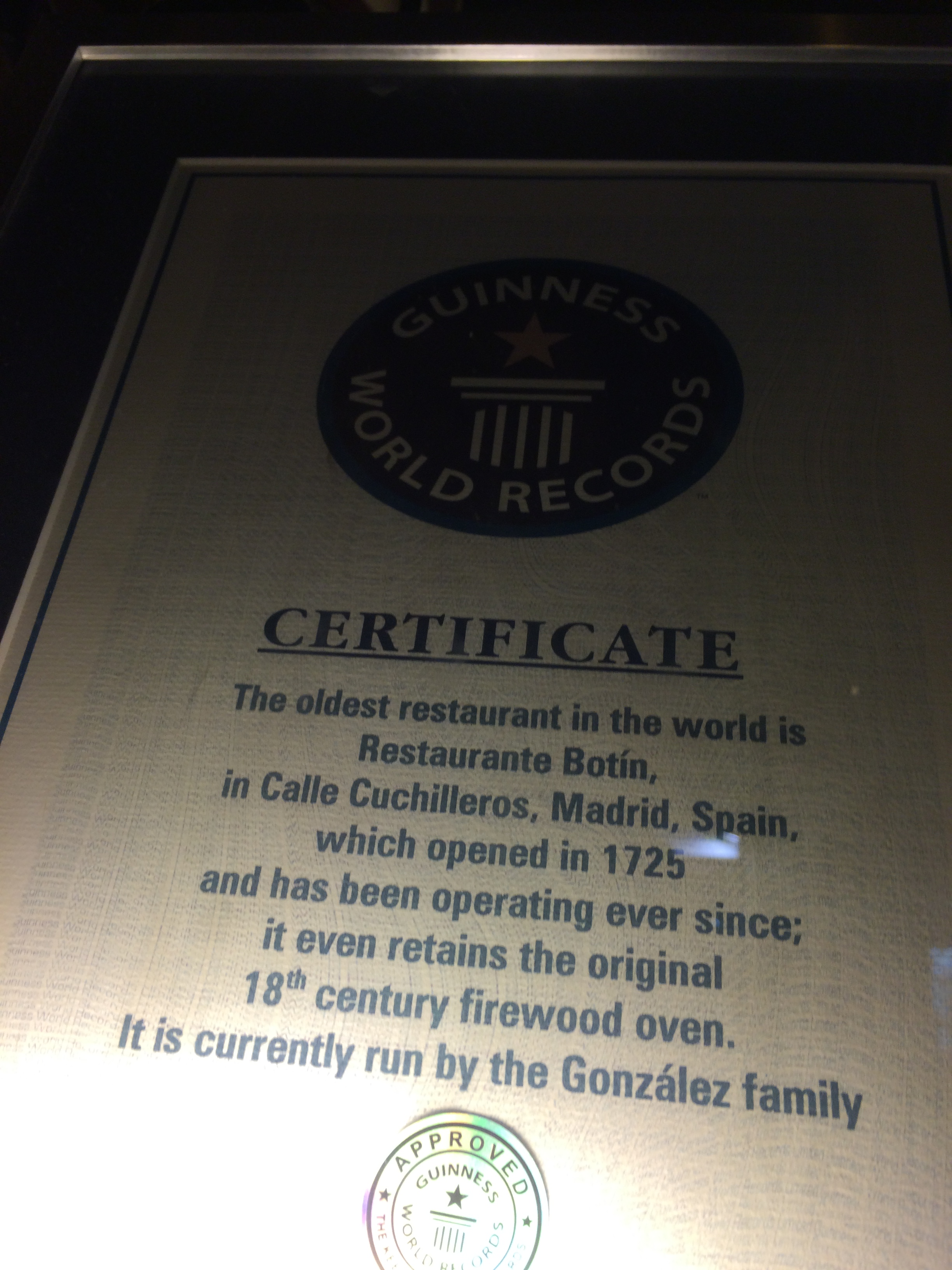 The oldest restaurant in the world. That’s what Botin is, and because of that, it’s extremely popular and one of the reasons why we wanted to go.