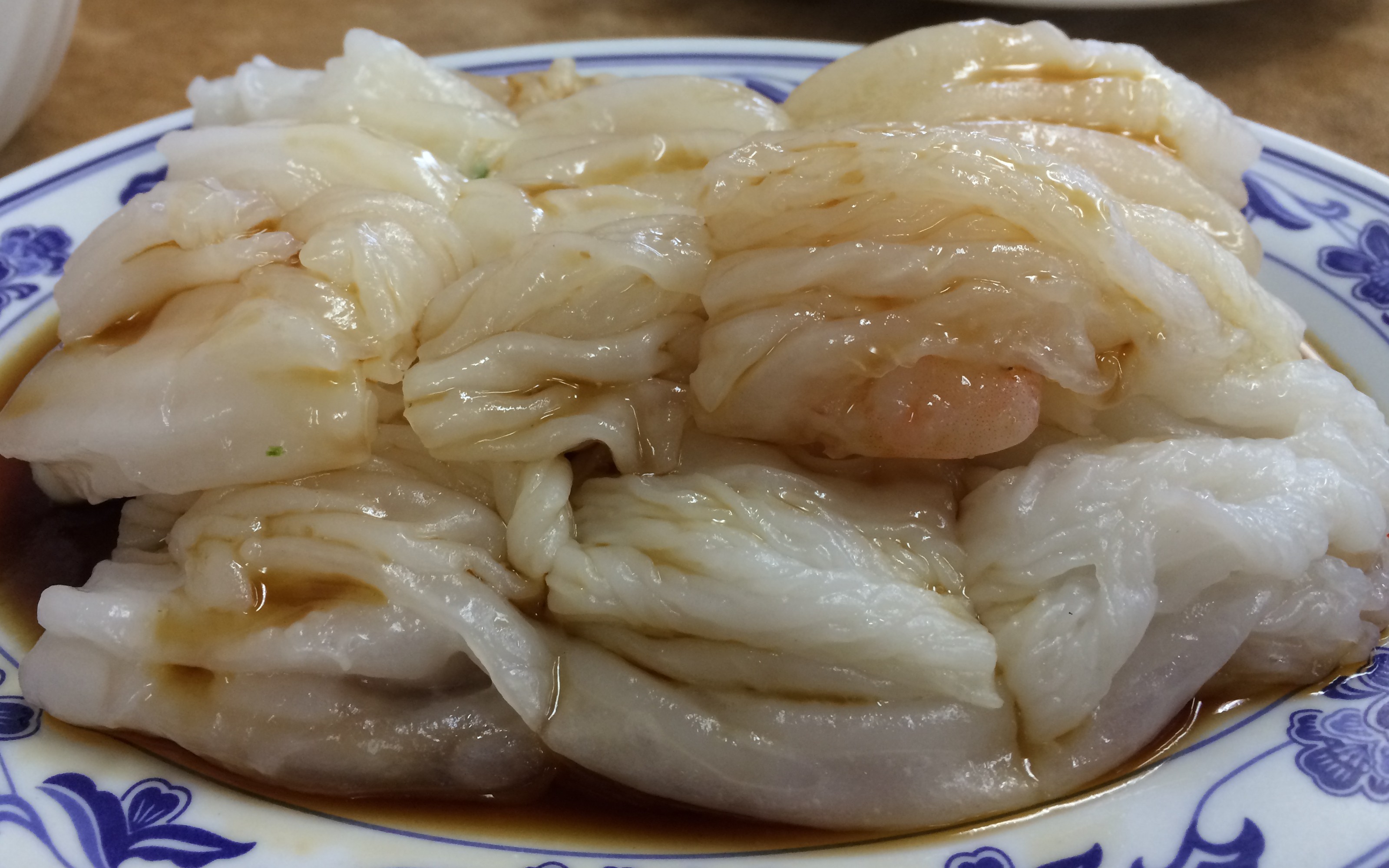 Shrimp Chee Cheong Fun. The flour is thin, as it should be. But a little too broken up. But the taste is good.