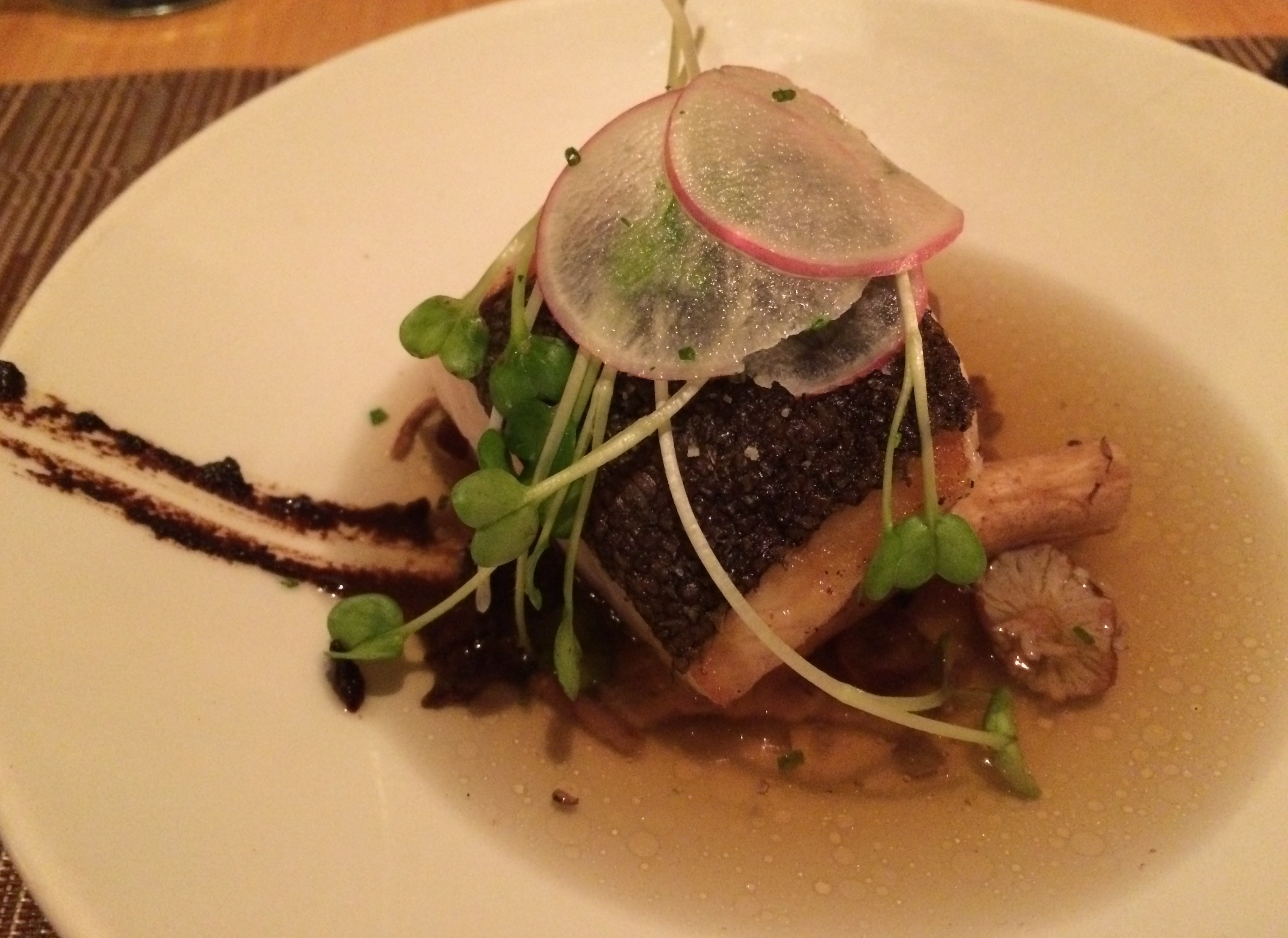 A little Cod. The Cod was cooked perfectly and inside the broth, which was subtle and amazing.