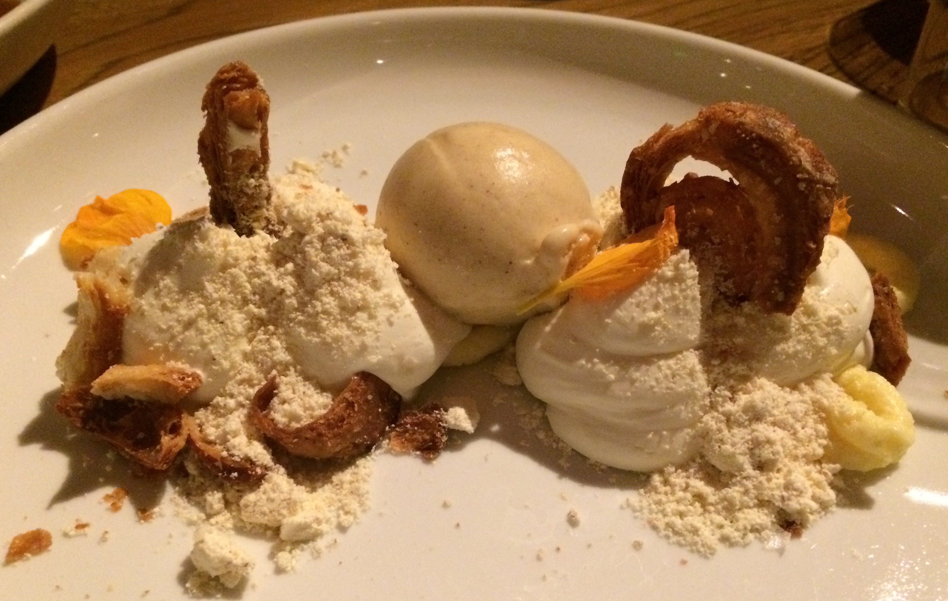 Dessert was also a great adventure. Here is Brown Butter Ice Cream with a Popcorn Mousse, Torn Croissant and a Lime Curd. Wow, amazing!