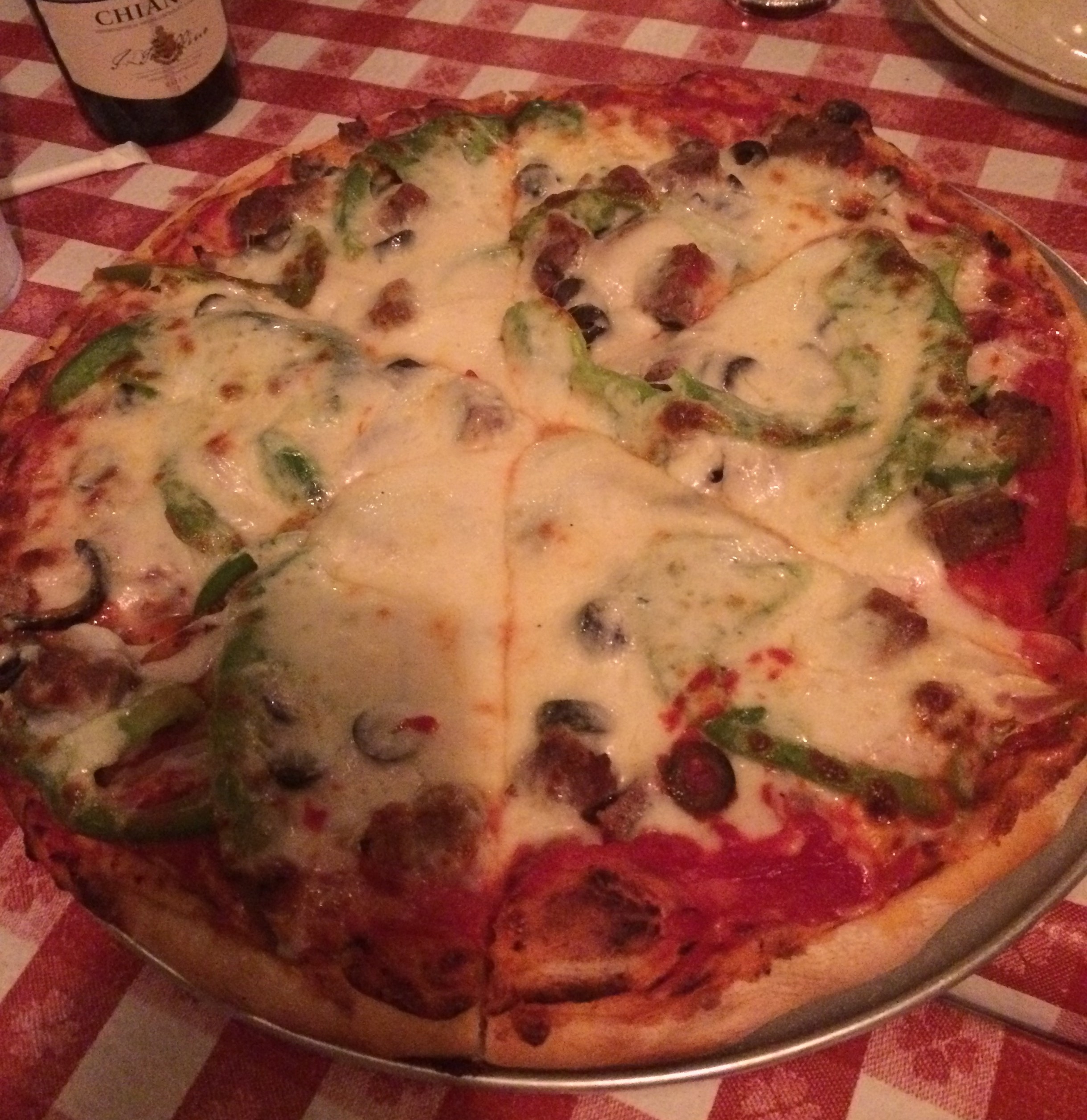 Now, it’s not exactly New York City style, it’s a little thick. It’s quite similar to a Sicilian pie, but round. I did enjoy it very much though it wasn’t Neopolitan, NYC style.