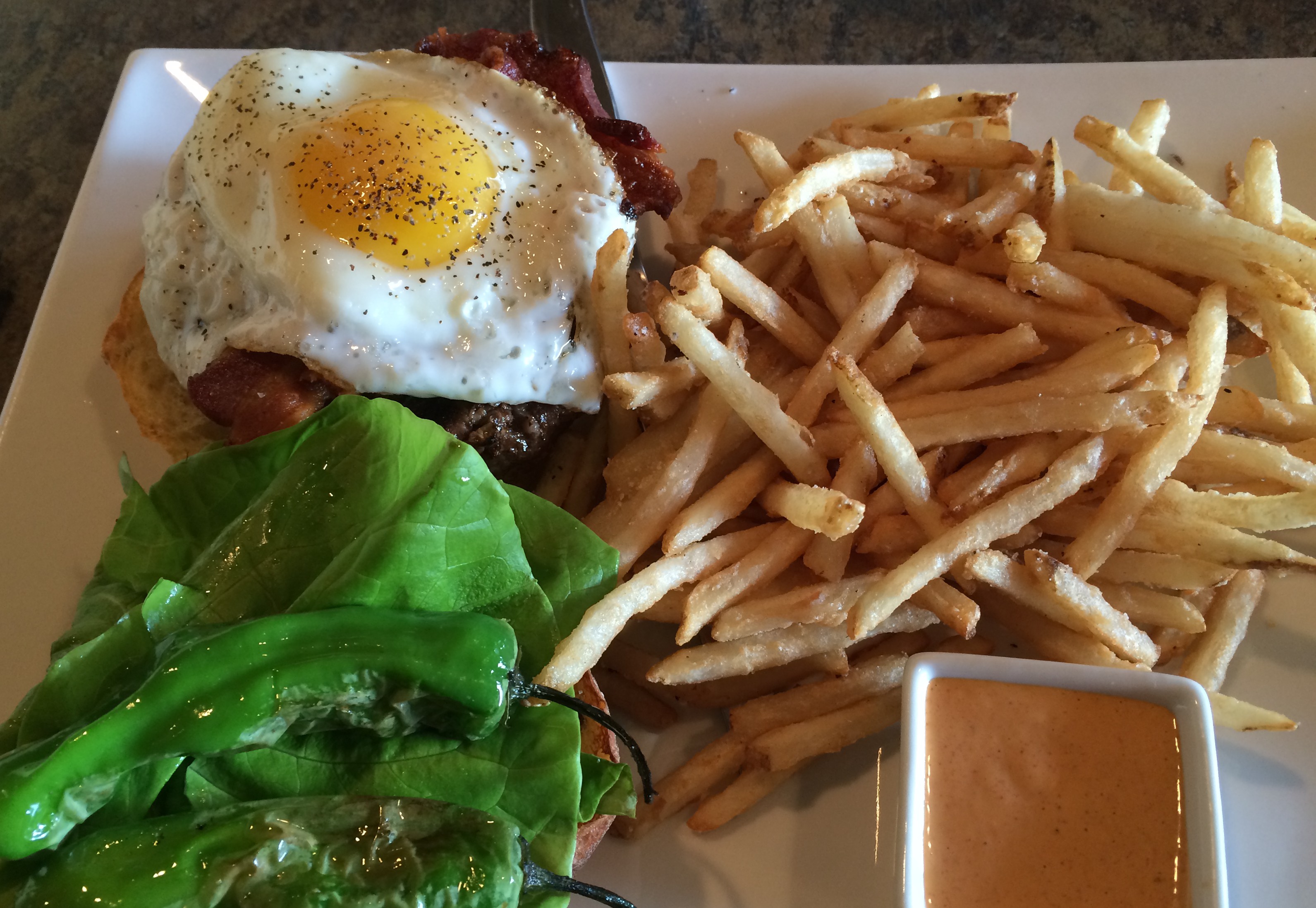 First up was Lena’s Bar Dojo Burger. It has an egg, Beecher’s Cheese, and Applewood Smoked Bacon on a Potato Bun. The fries were pretty good, and the burger was nicely done.