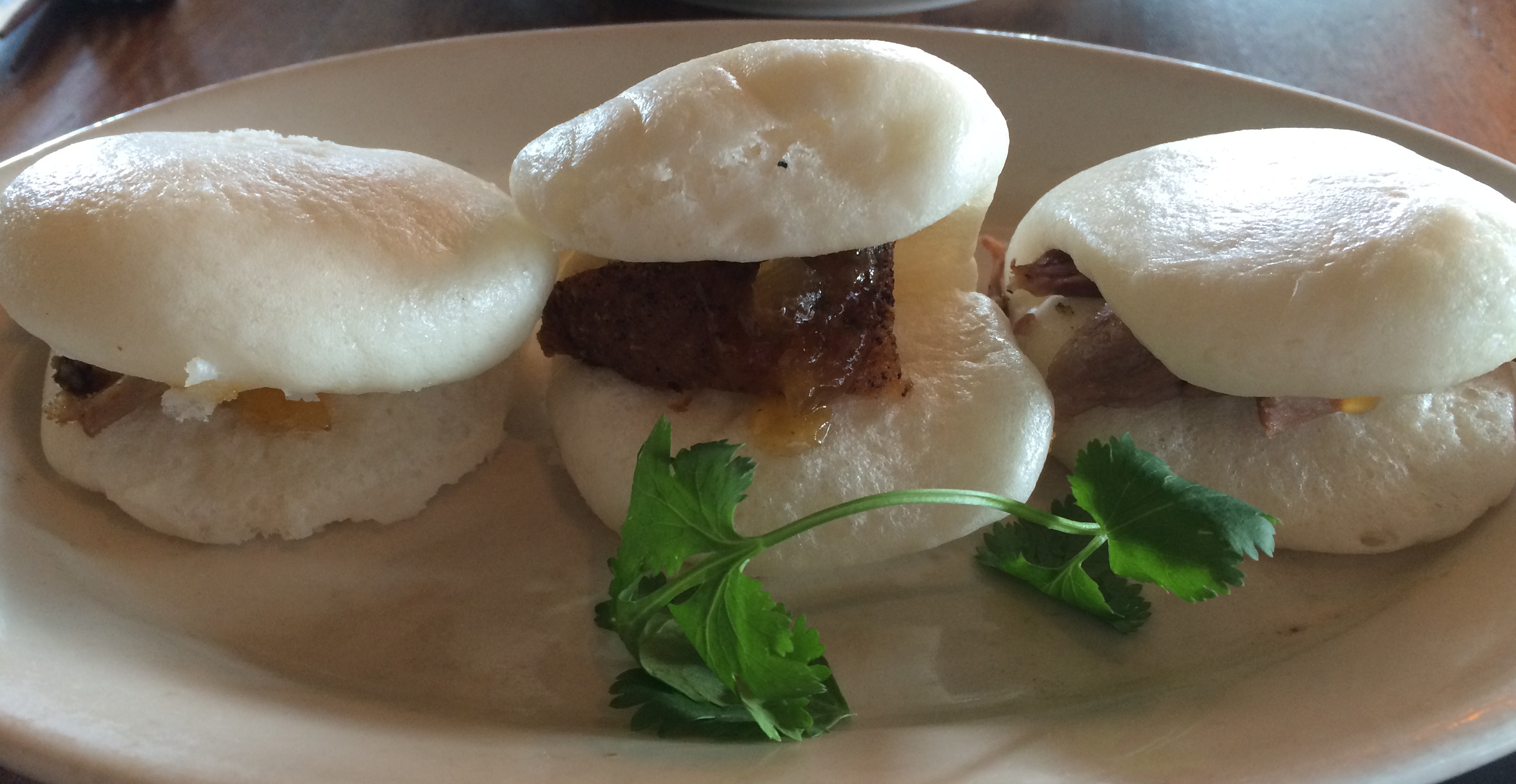 We started with Duck Sliders. Marinated Duck inside of a Dong Po Rou Mantou. The flavor of the duck was nice, but the Mantou was a little hard.