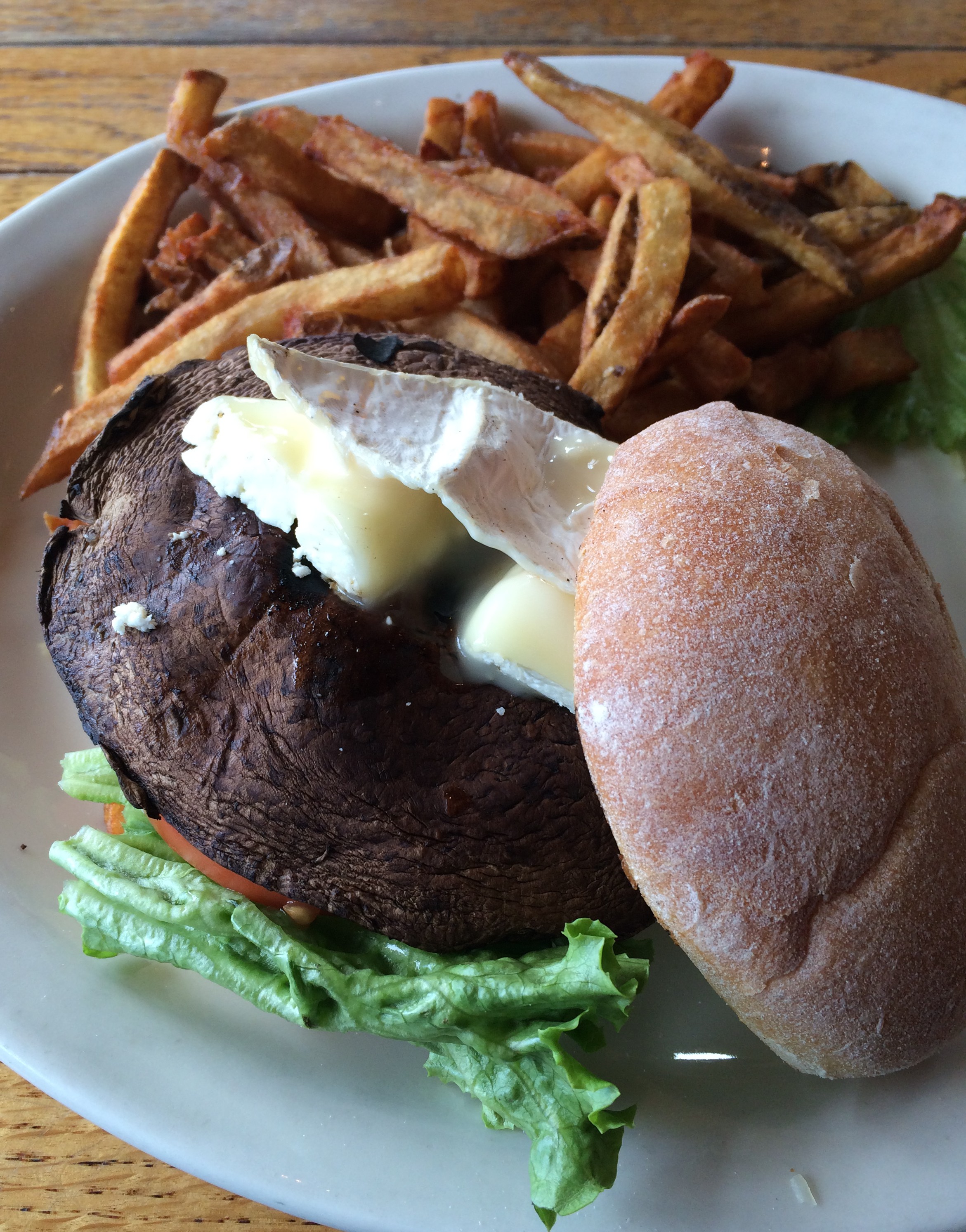A Portobello Mushroom Burger with Brie.  A great veggie option on a bun.