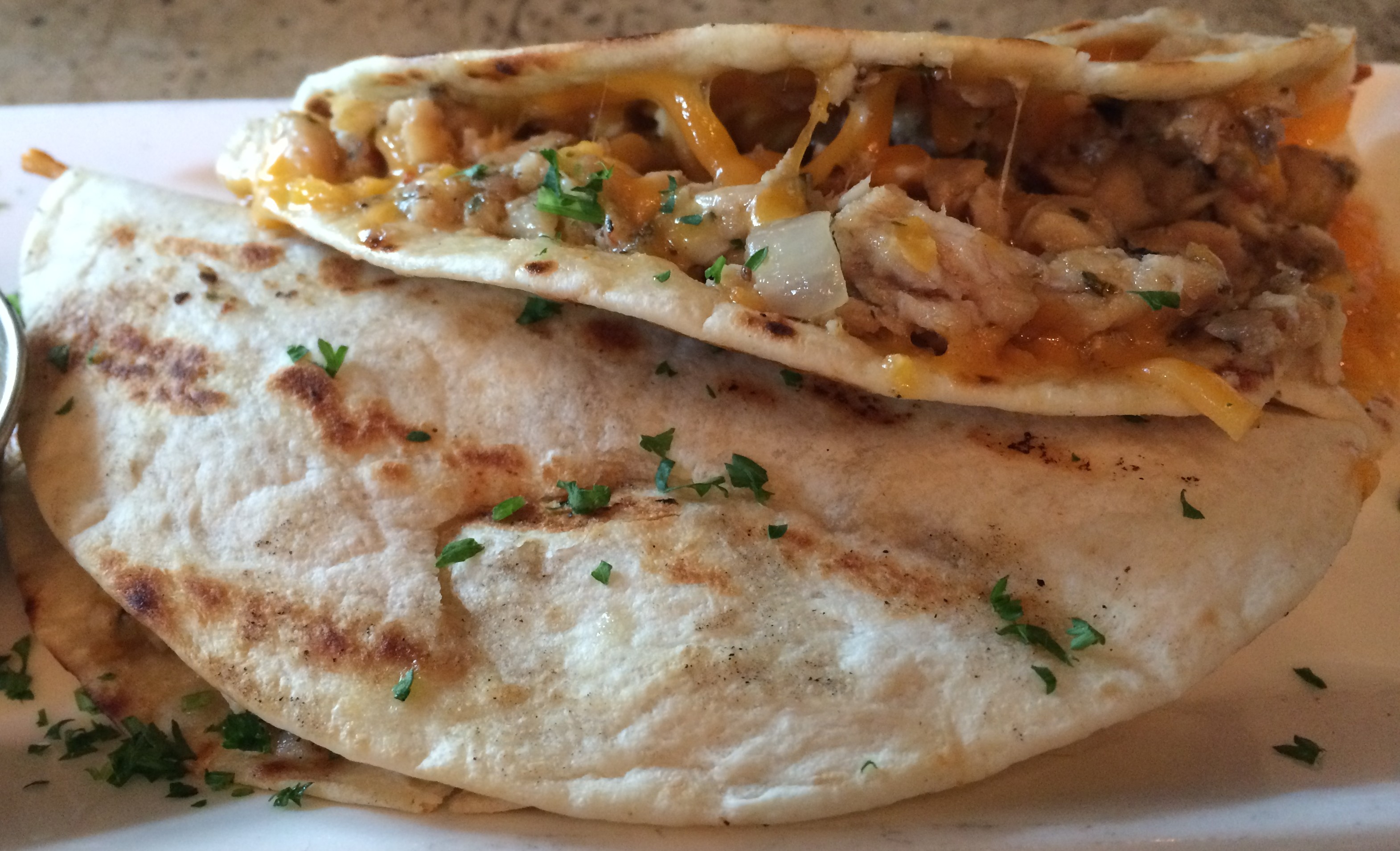 We started with the Fish Tacos. Interesting, that’s for sure. It was shredded fish inside of a grilled tortilla. Good taste, but more trendy than anything.
