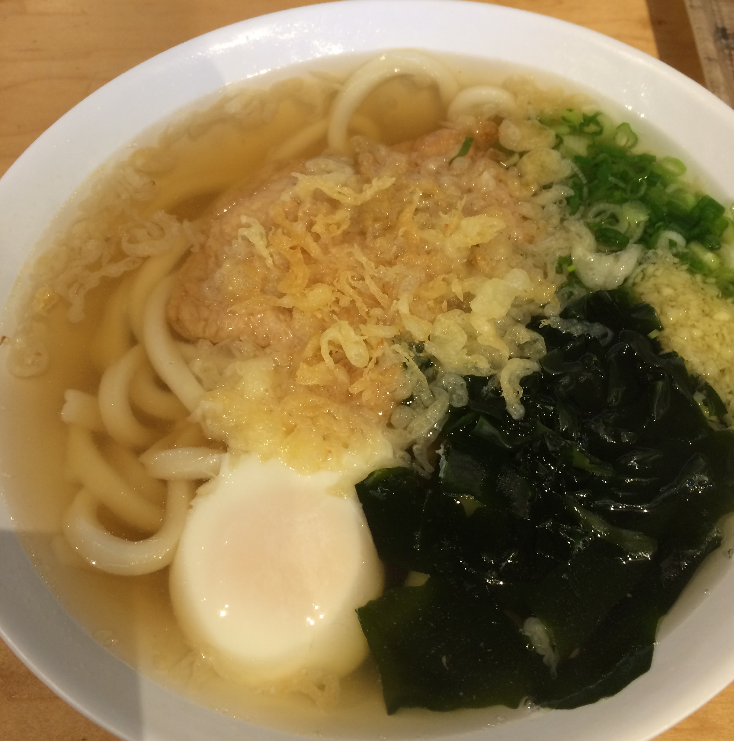 First off, you order your Udon.  I decided to go for the Kitsune Udon, with the Sweet Bean Curd and also added a nice Onsen Egg as well.  And I love to add the Fried Tempura bits to my Udon.