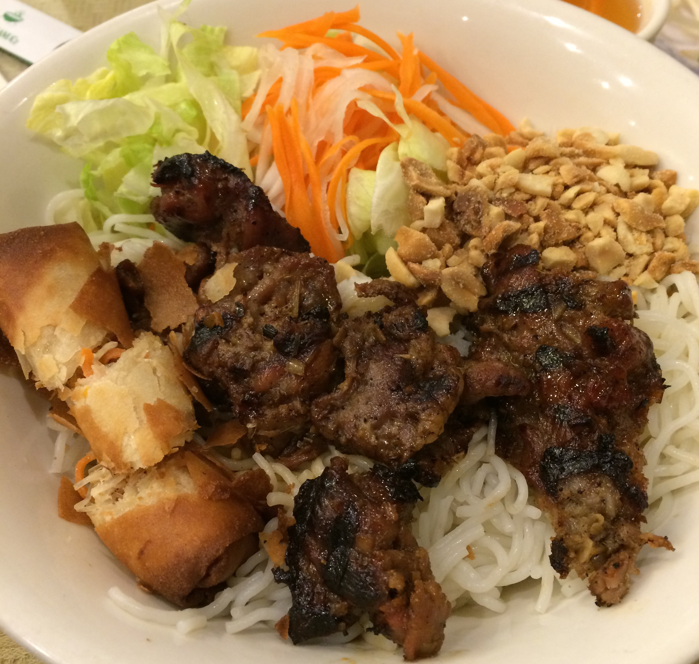 The we got one of my favorites, bún thịt nướng chả giò, the Grilled Pork with Vermicelli and Spring Rolls. This was nicely flavored also.
