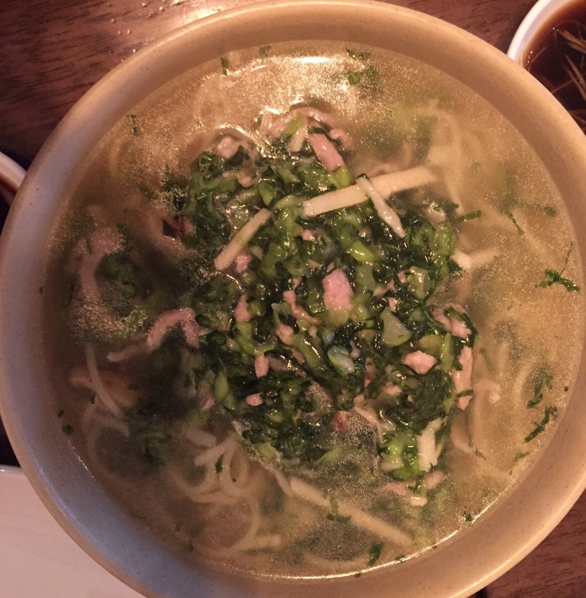 OK, let’s get to it. Soup and Noodles first. Here is the Shanghai staple that I love, and I love to get when I go to Shanghai. Pickled Vegetables and Pork slices with Noodles. This one is fresh and nice.