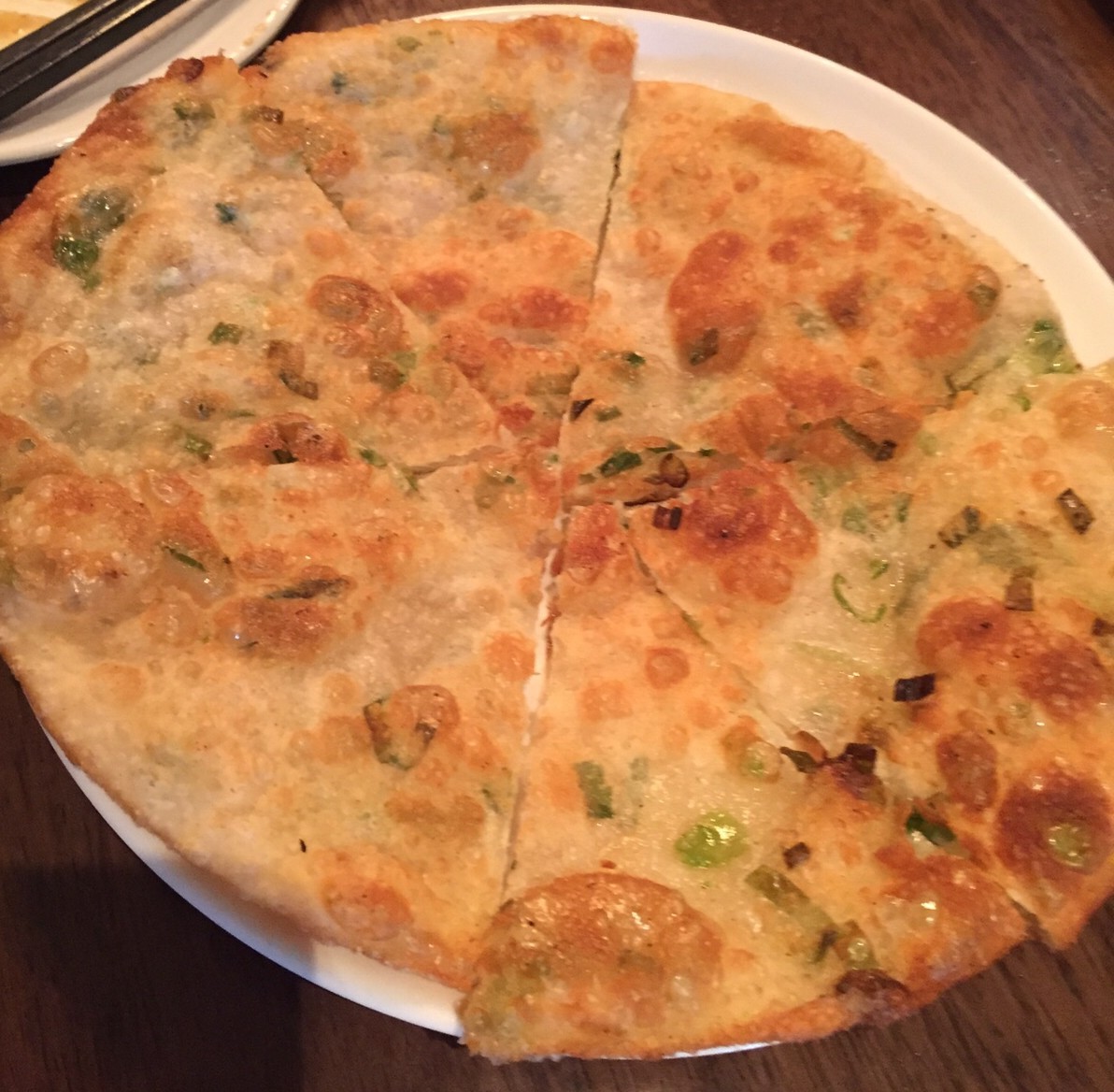 Scallion Pancake. My nephew TC loves these. These are pretty crispy, I usually like mine a little more fluffy.
