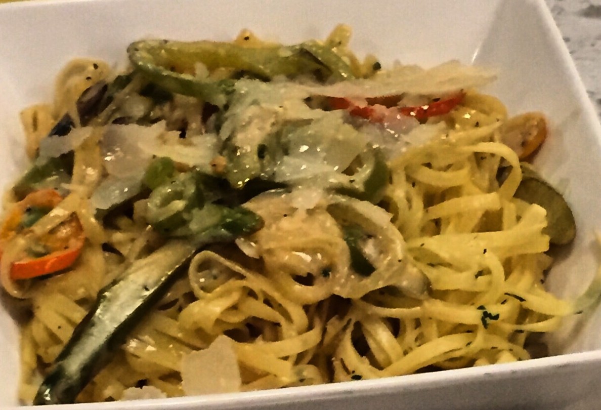 Linguini with a bunch of vegetables. Looked ok, but I didn’t try it, but heard it was okay.