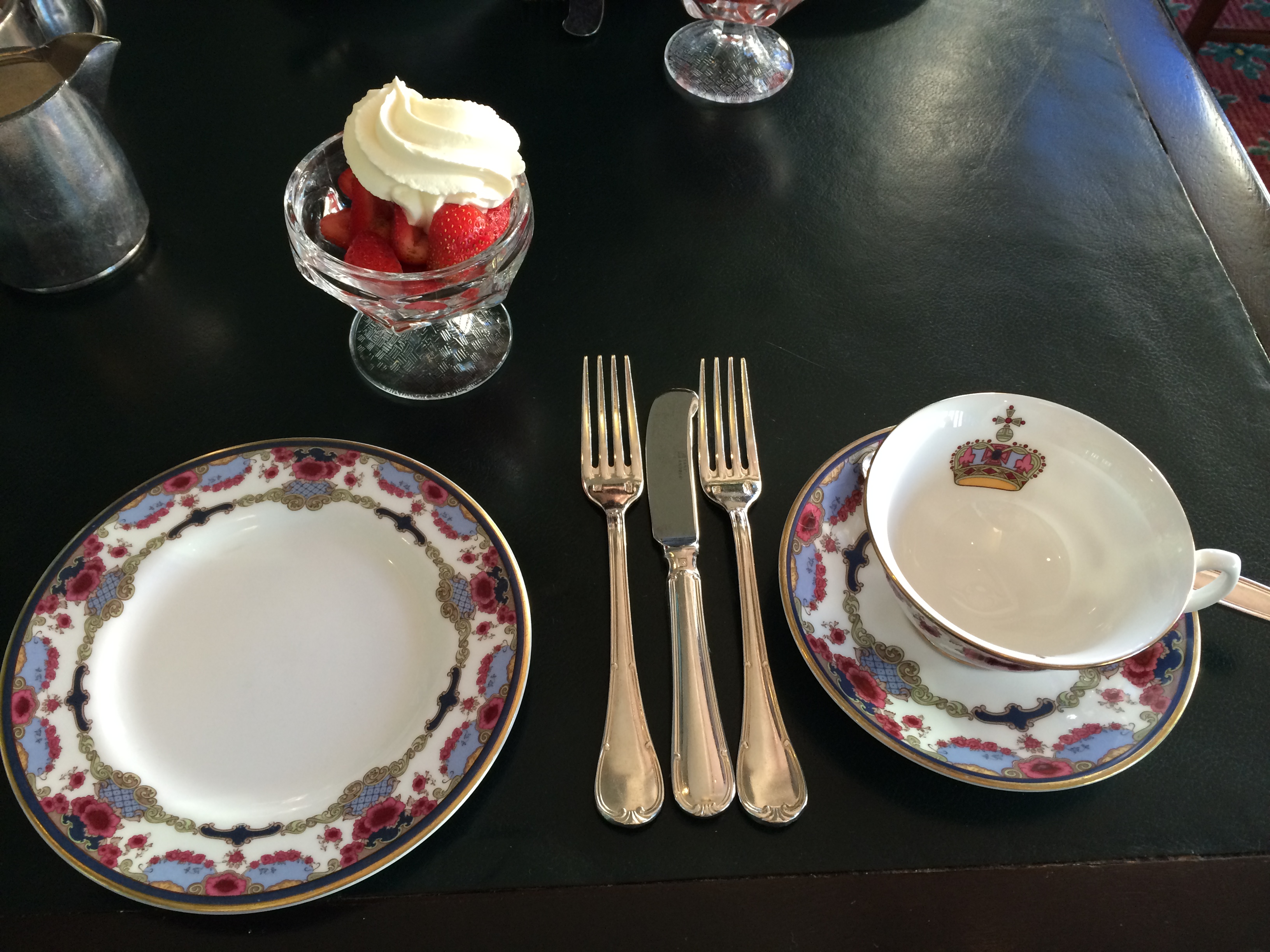 Our setting for the High Tea, and it comes with a starter of Strawberries and Cream.