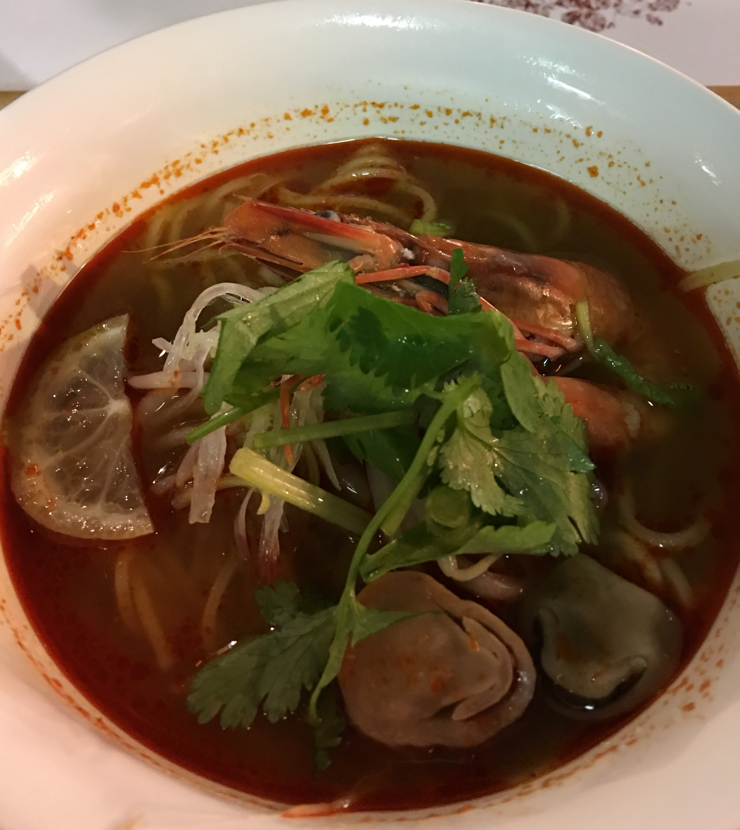 It’s really busy in there! You go to each stall and buy your ticket and get your noodles.