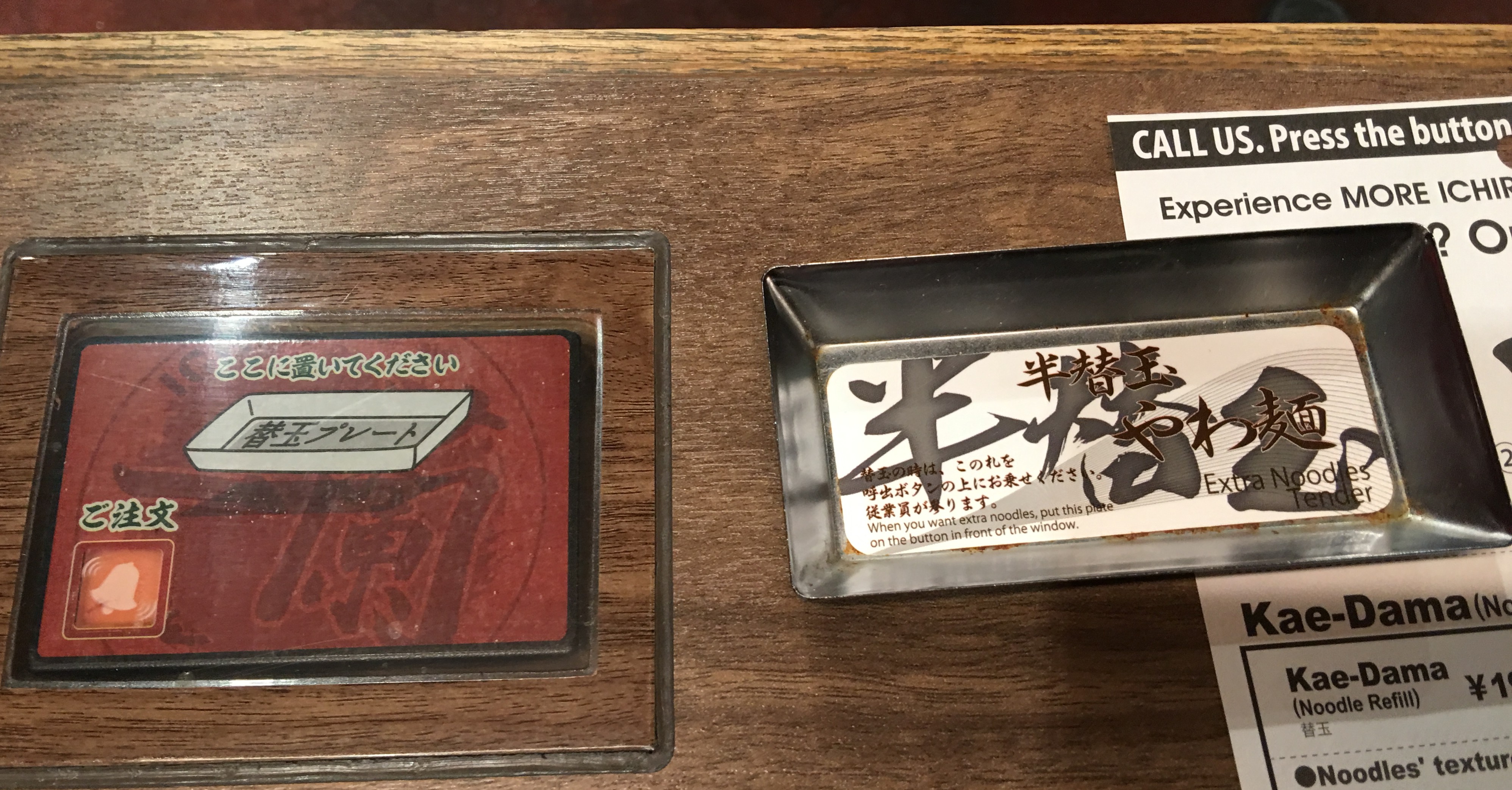 If you want to call them, you press the button on the left. Because I wanted extra noodles, I got a placeholder to trade in when I want the noodles.