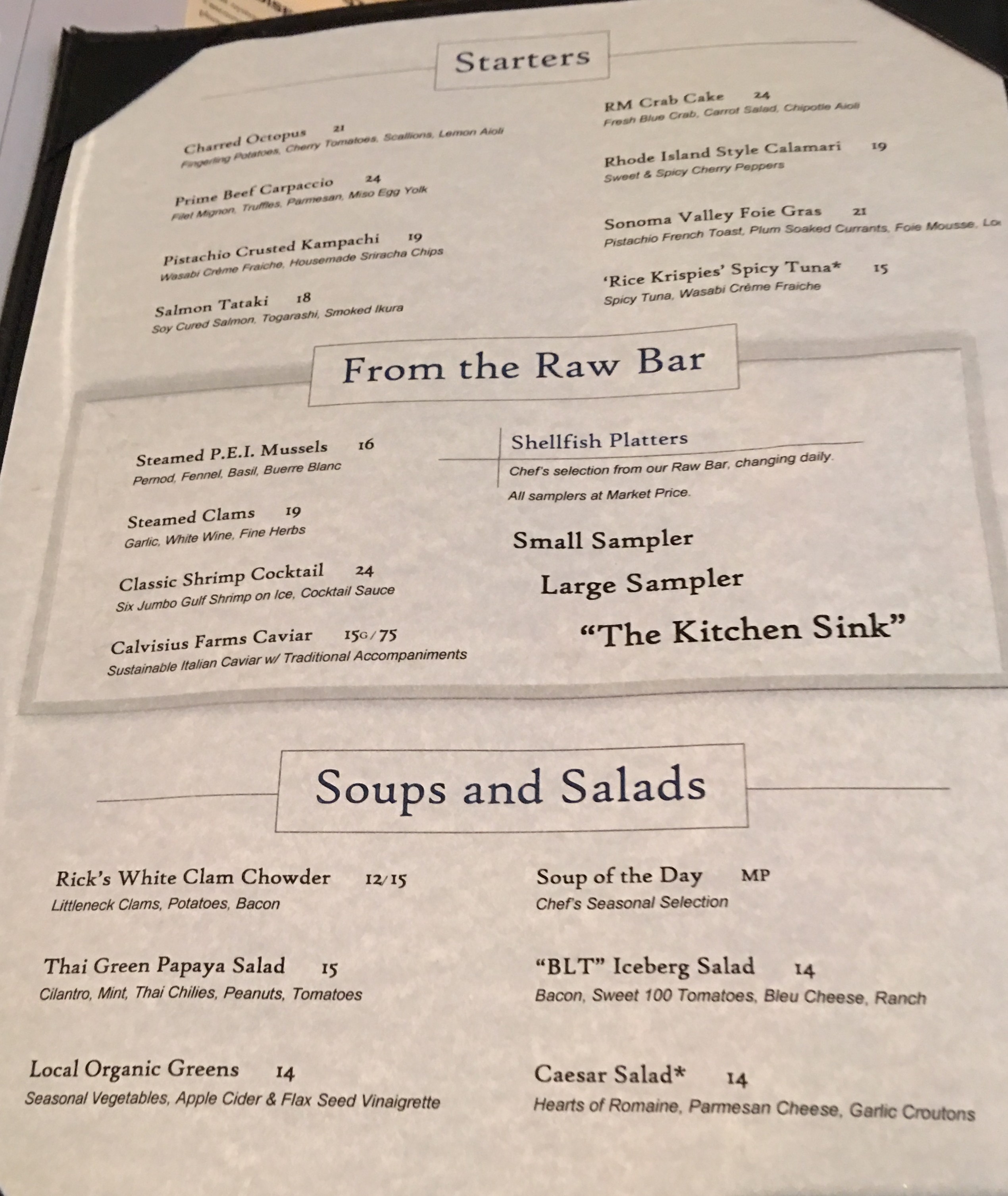 Started out with the famous RM Crabcake. The texture was nice, not a lot of breadcrumbs, and plenty of crab. Fried nicely and wish there was a little more sauce. The little slaw on the side doesn’t make a lot of sense, but it’s there to even out the hint of oil from the crabcake.