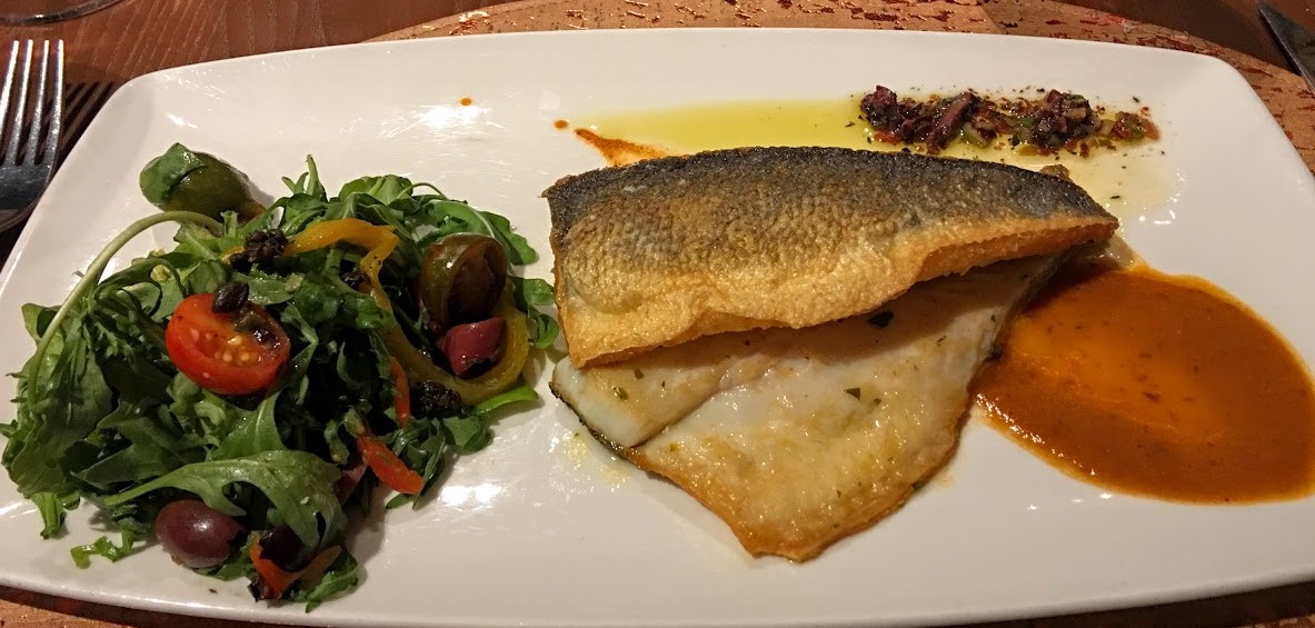 The main was a pan-fried Branzino. I was sort of expecting it on the bone, but then I remembered that this was Vegas.