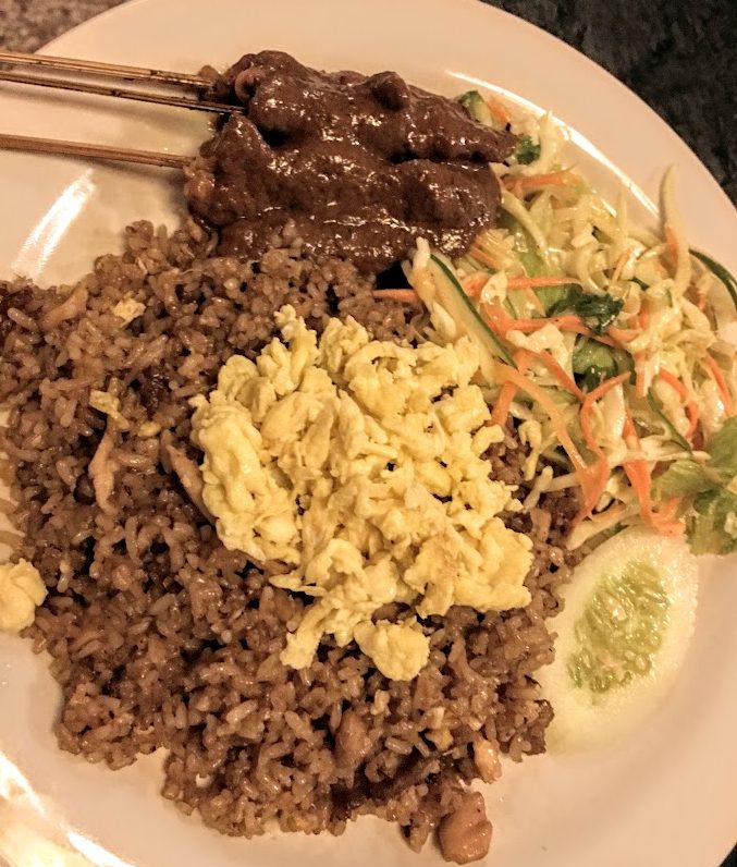 Nasi Goreng, with some Chicken Satay. Not a bad taste.