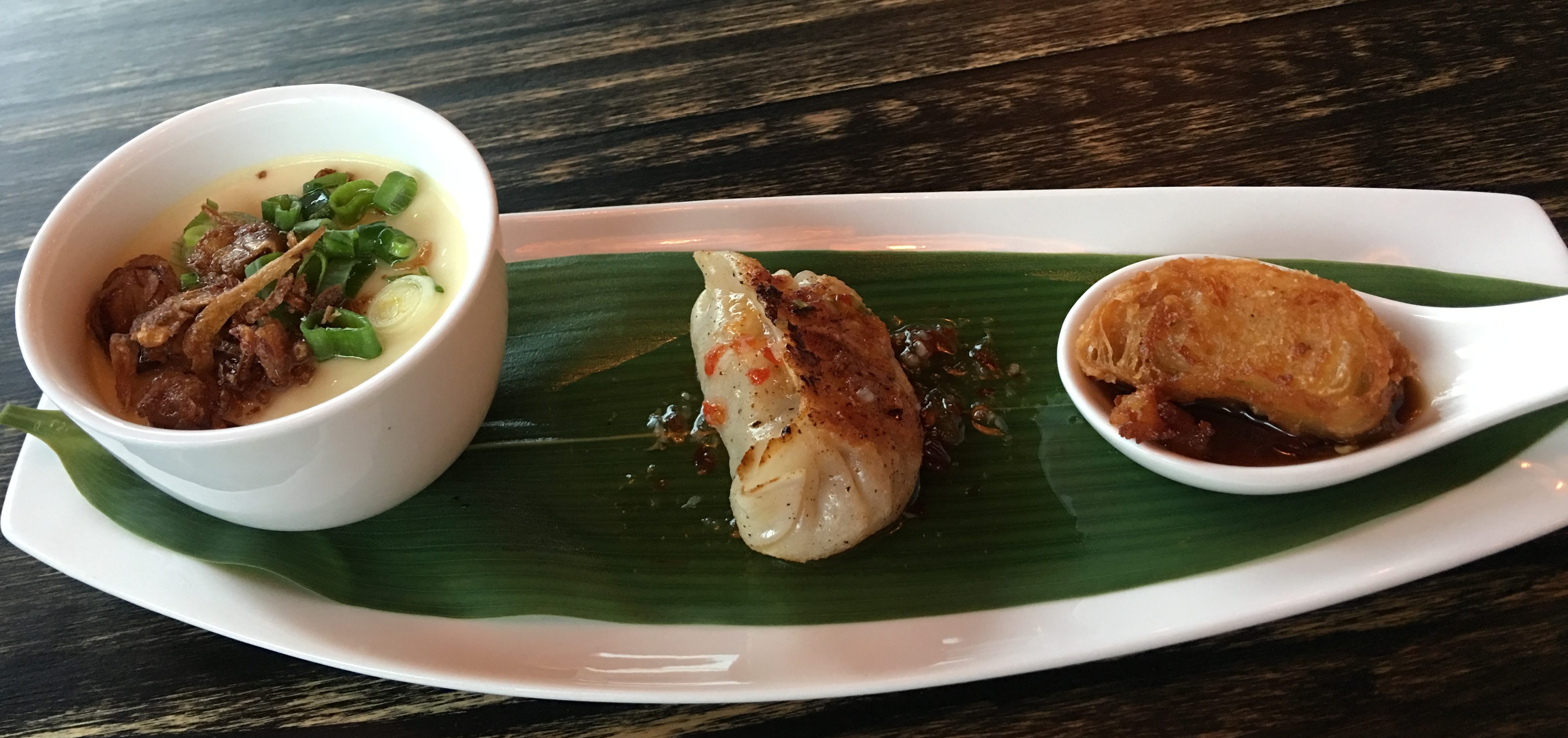 The starter for the fixed menu was a Chawanmushi, a Thai Pork and Basil Dumpling and a Sotong You Tiao.