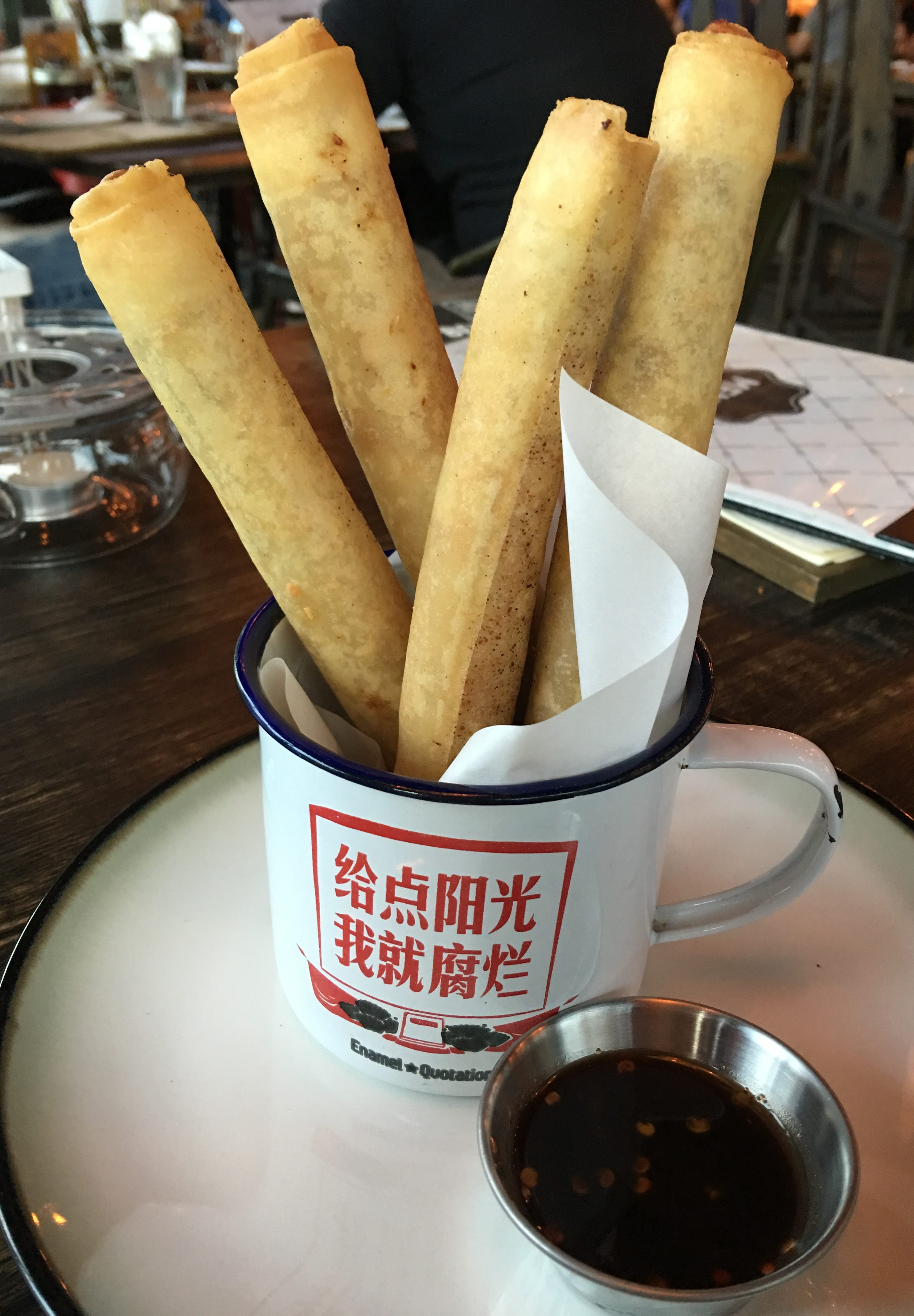 Here we have Ngoh Hiang Spring Rolls. Cigar-shaped and inside is the nice juiciness of the Nhog Hiang that you know and love. Instead of the bean curd wrap on the outside, it’s put into the spring roll wrapper, making it crispier and a nice. The inside was a nice mince of pork and prawn, with the flavors that are there.