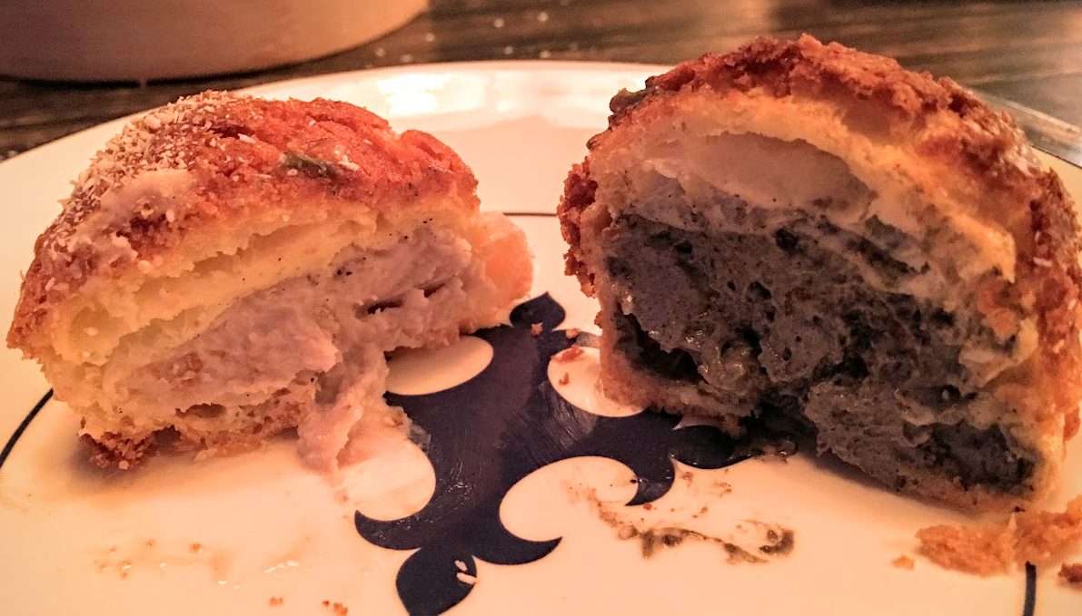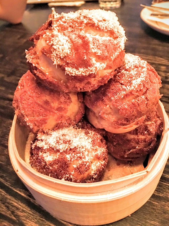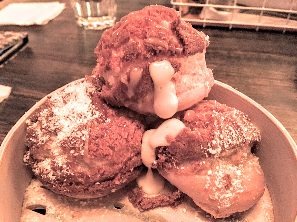 For dessert we tried their Menage A Trois, a mini-croquembouche with three different flavors of filling in the profiterole. Salted Egg Custard, Orh Nee and Black Sesame.