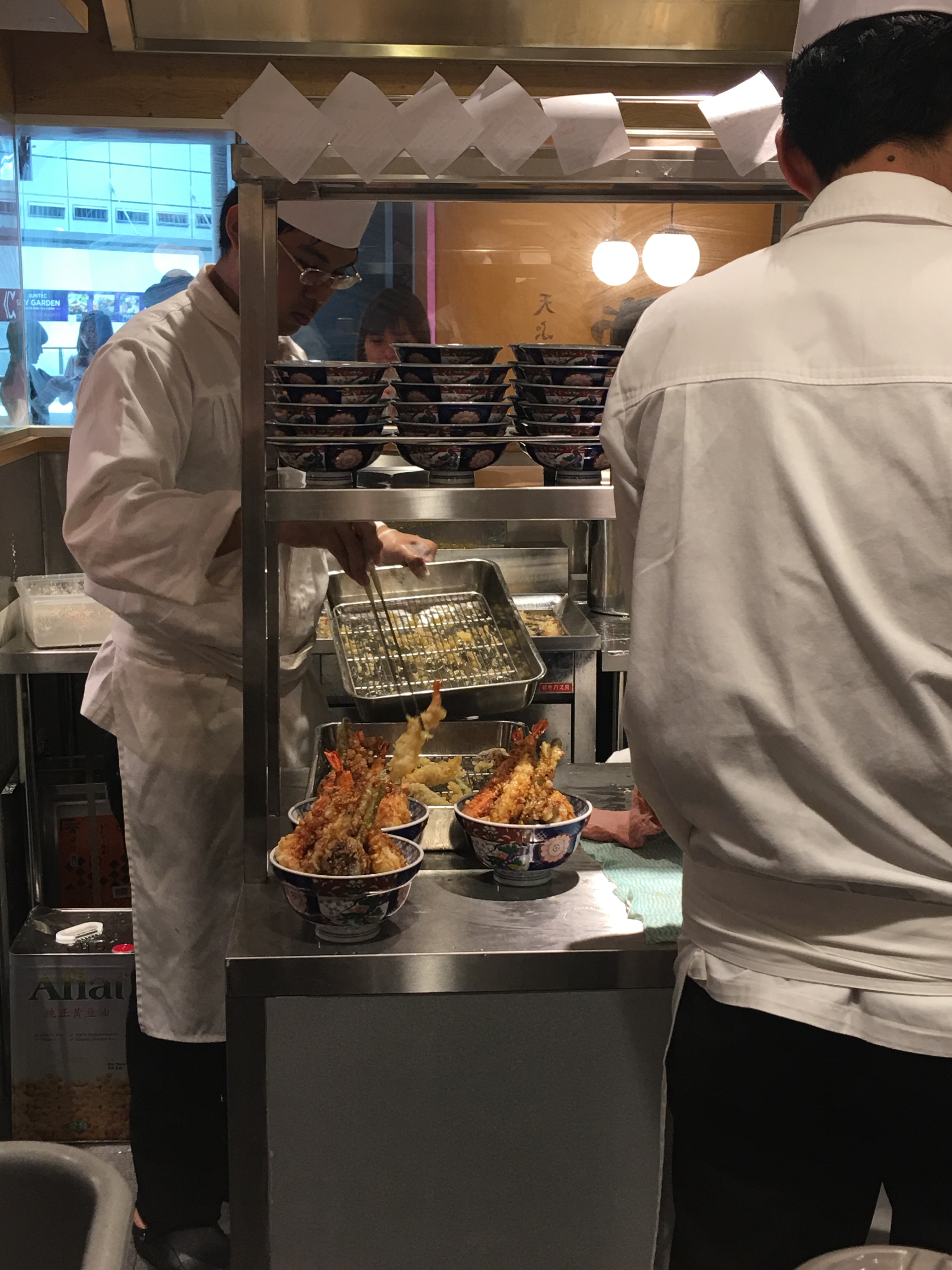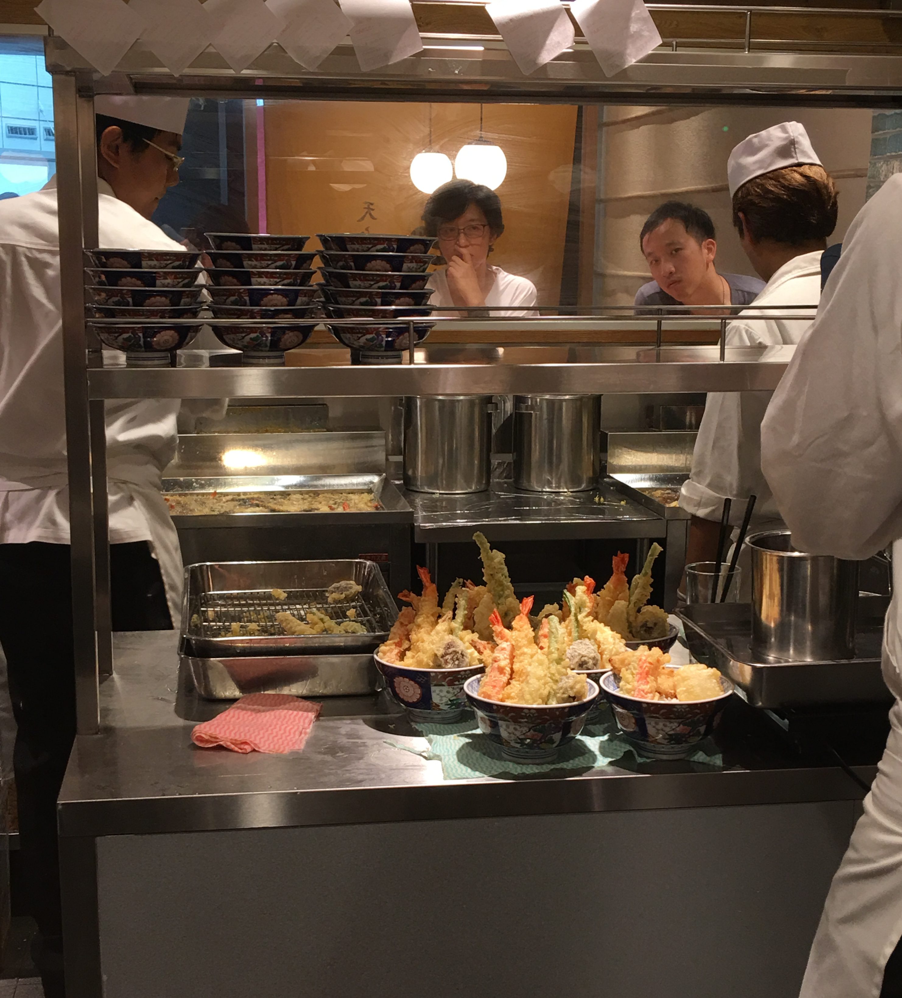 The beauty is watching the process. All tempura cooked in two frying vats on one side. Prawns are done in one, vegetables and the other items in the other.