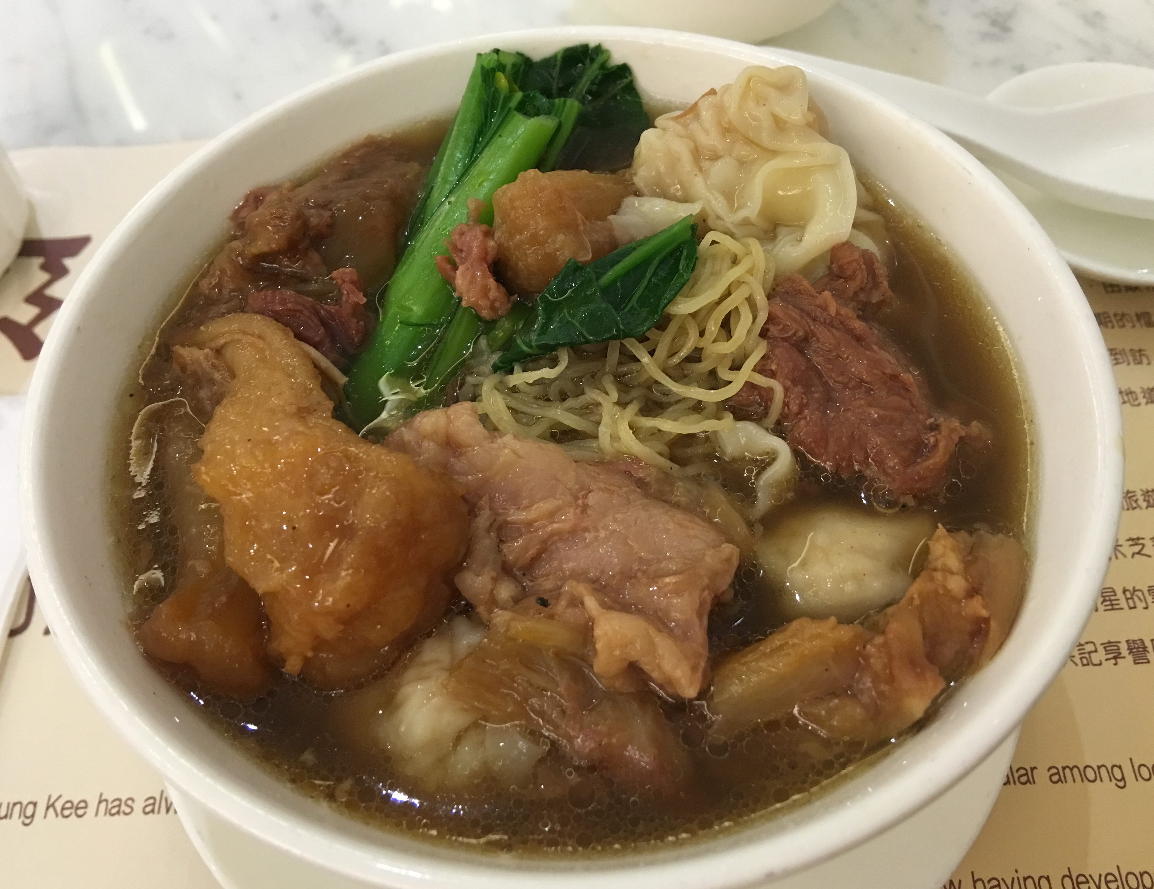 My only objection to this bowl of Wanton Noodles is the price. $83 HKD. That’s about $11 USD/$16.50 SGD. They charge you for Beef Brisket Noodles and then a la carte Wontons. Wow, the price is up there. A lot of the local shops will charge you about $45 HKD for this, or $5.50 USD/$9 SGD.