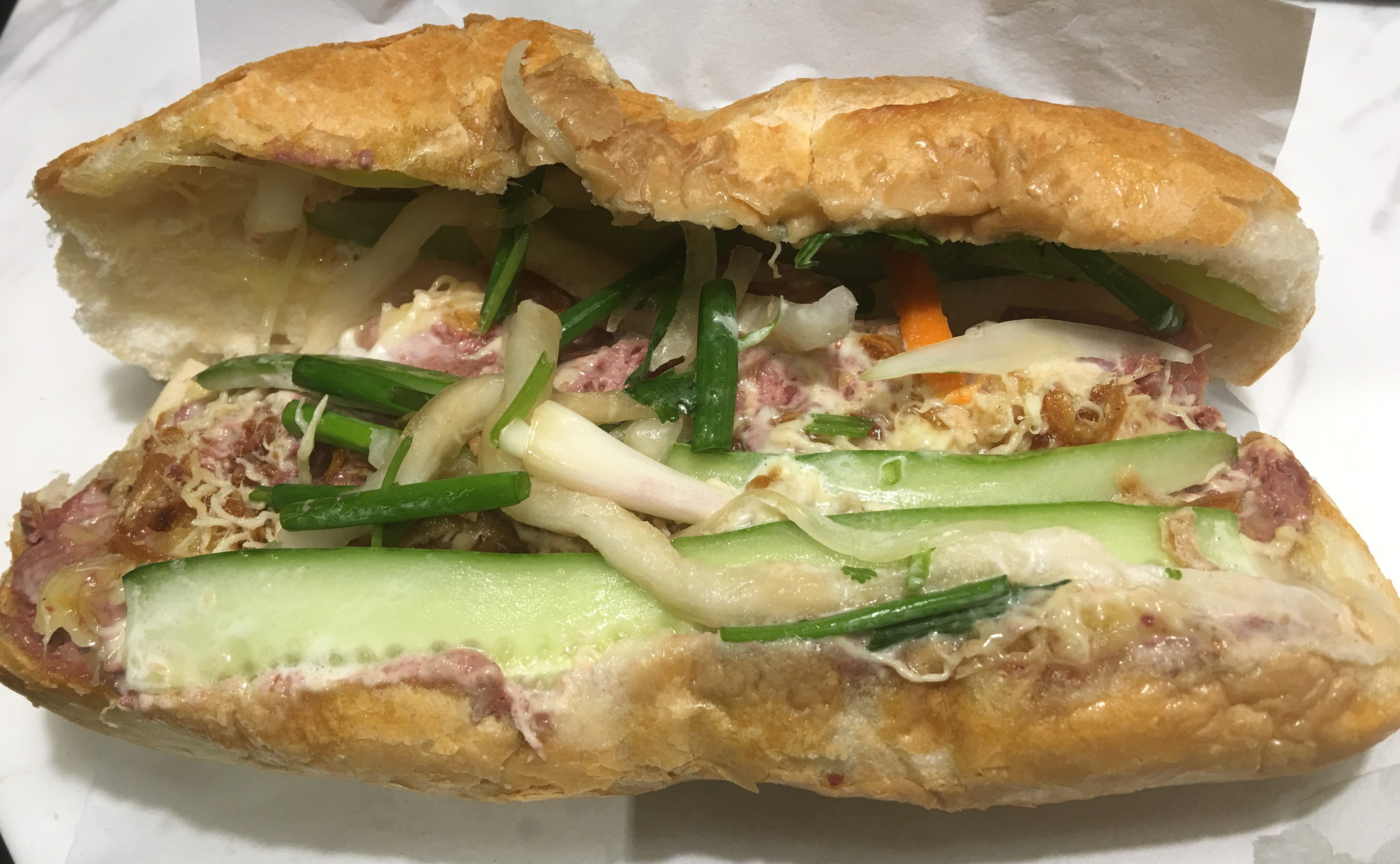 I wish there were a little more vegetables in it, after all, that crunch of the pickled vegetables makes a great Bánh Mì, but the taste it awesome. The bread is nice and the meat is just right. Enough Pate and Mayo to make it moist as well.