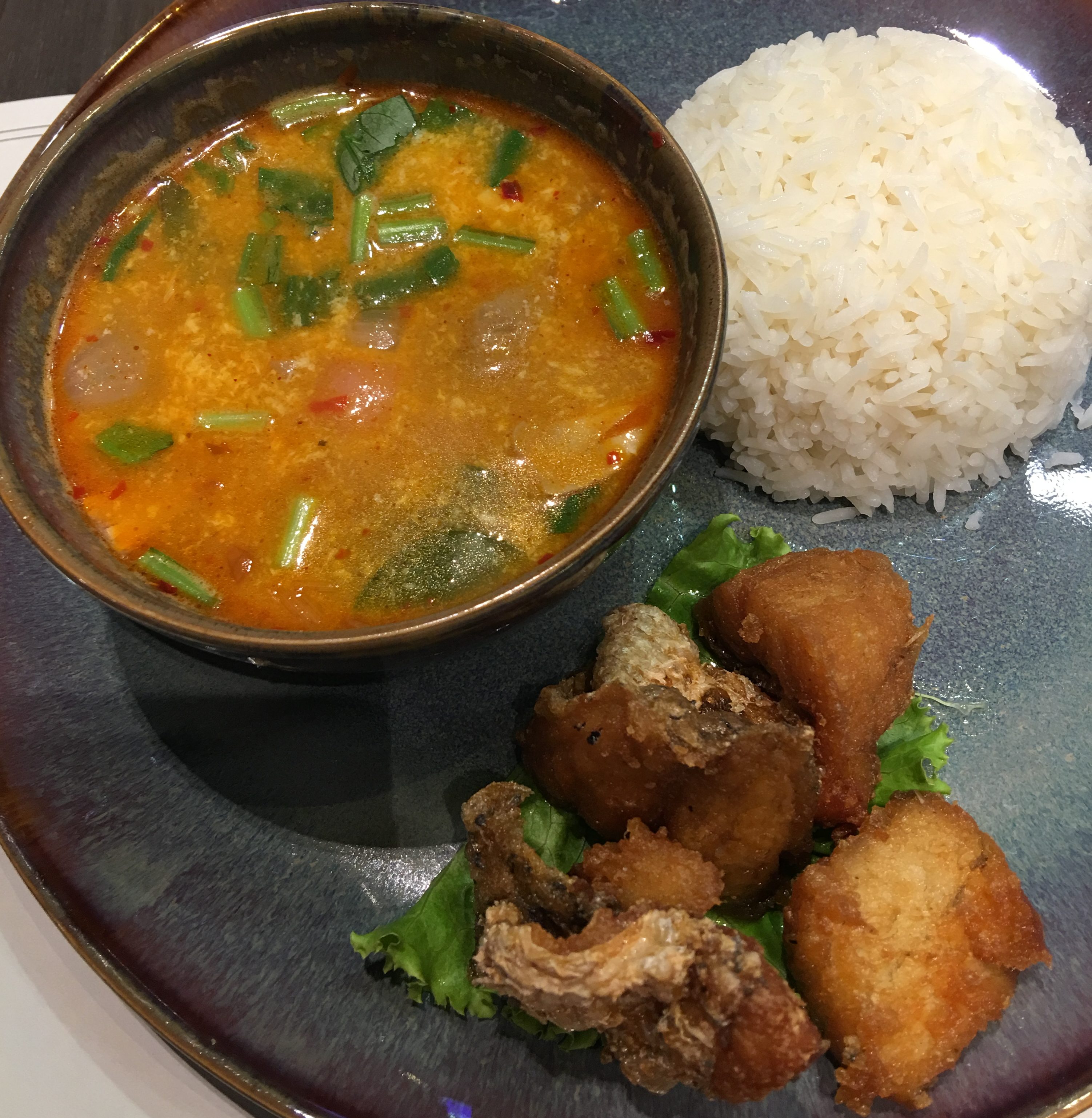 Here is the Pad Wun Sen, or Fried Tang Hoon (Bean Vermicelli).  Nicely done.img_9342 Went for a set meal, some Tom Yum Soup and Fried Fish.  The Soup was spot on.img_9344Good for the mall, but try to get out to the real Thai spots to eat.