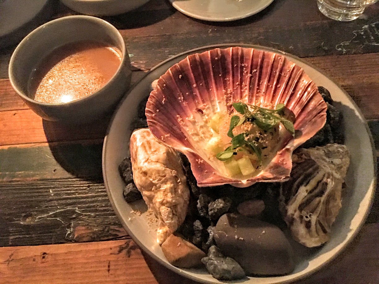 The next course was a Scallop with Sea Salad, a bit of Mussels. It was accompanied by a Chicken Broth with Shitake. Not sure what the broth was really for, it seemed out of place to me.