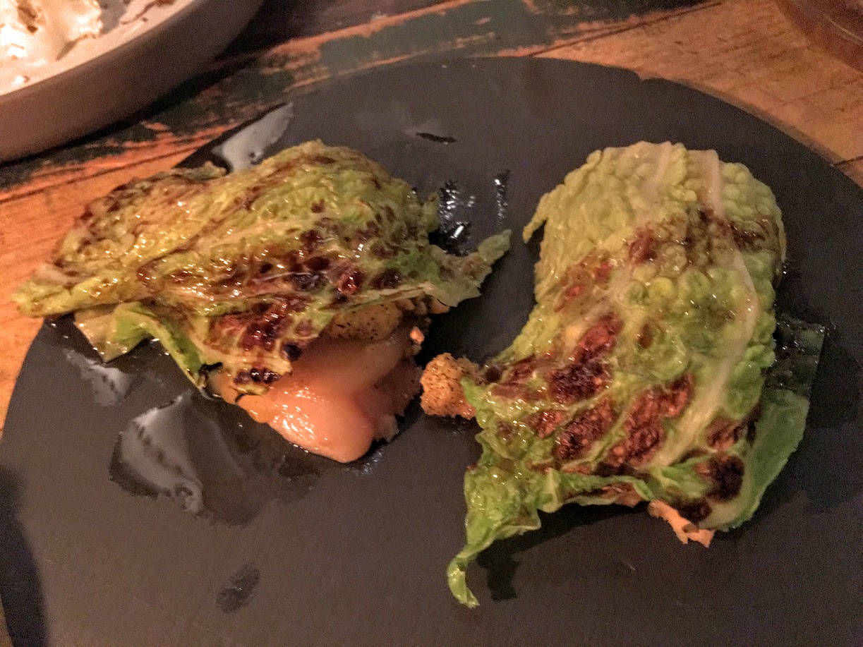 This was served with Pork Belly and Apple Puree wrapped in Kale. This was a little decadent as well, and the flavors did match.