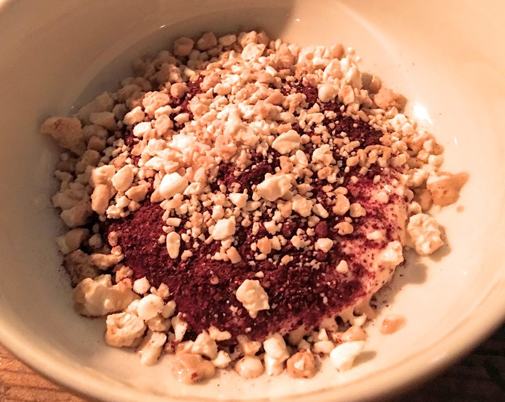Finally for dessert there was a Yogurt Mousse, topped with liquid nitrogen Porter Beer Ice Cream, and Berries. This was nice a light and a great end.