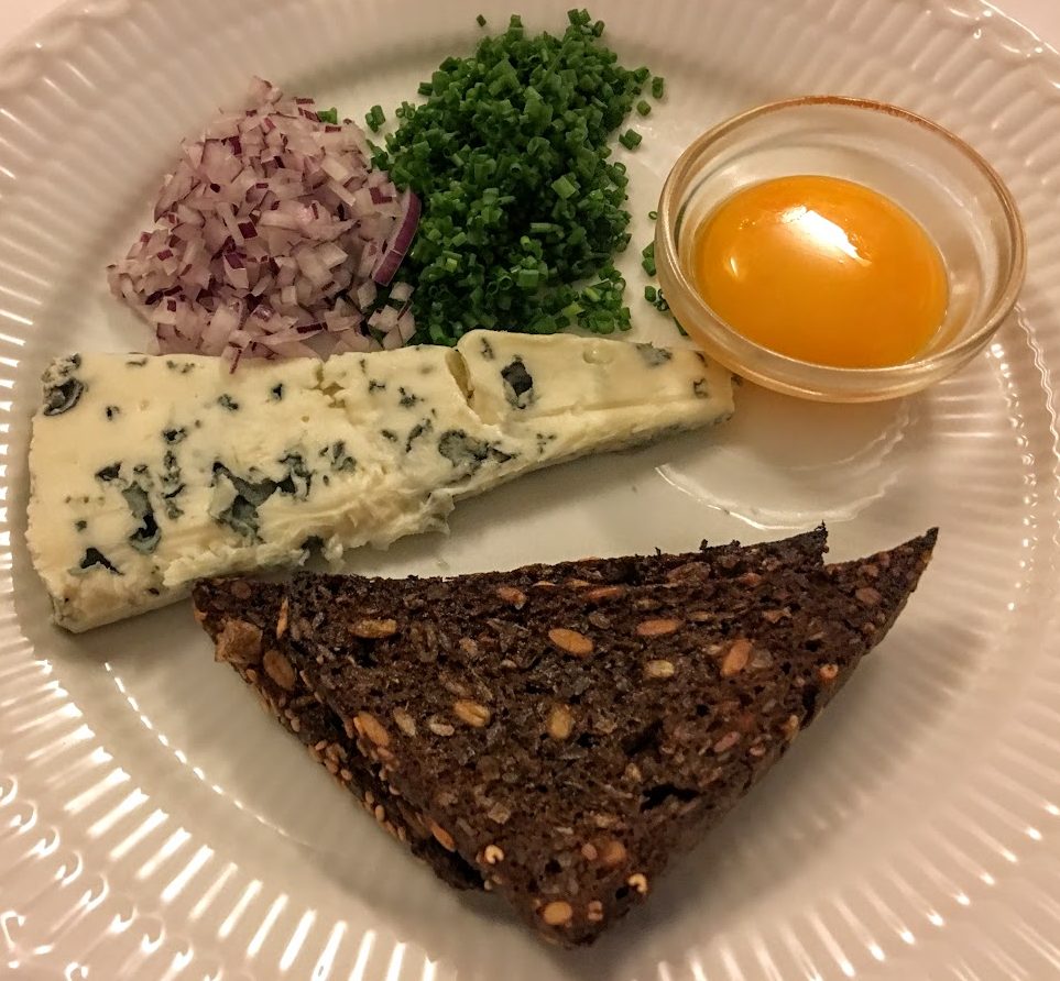 Finally to end it all some Danish Gorgonzola with an egg yolk. Putting it all together was a dream. I understand that Gorgonzola is a love it or hate it cheese, but me, I love it.