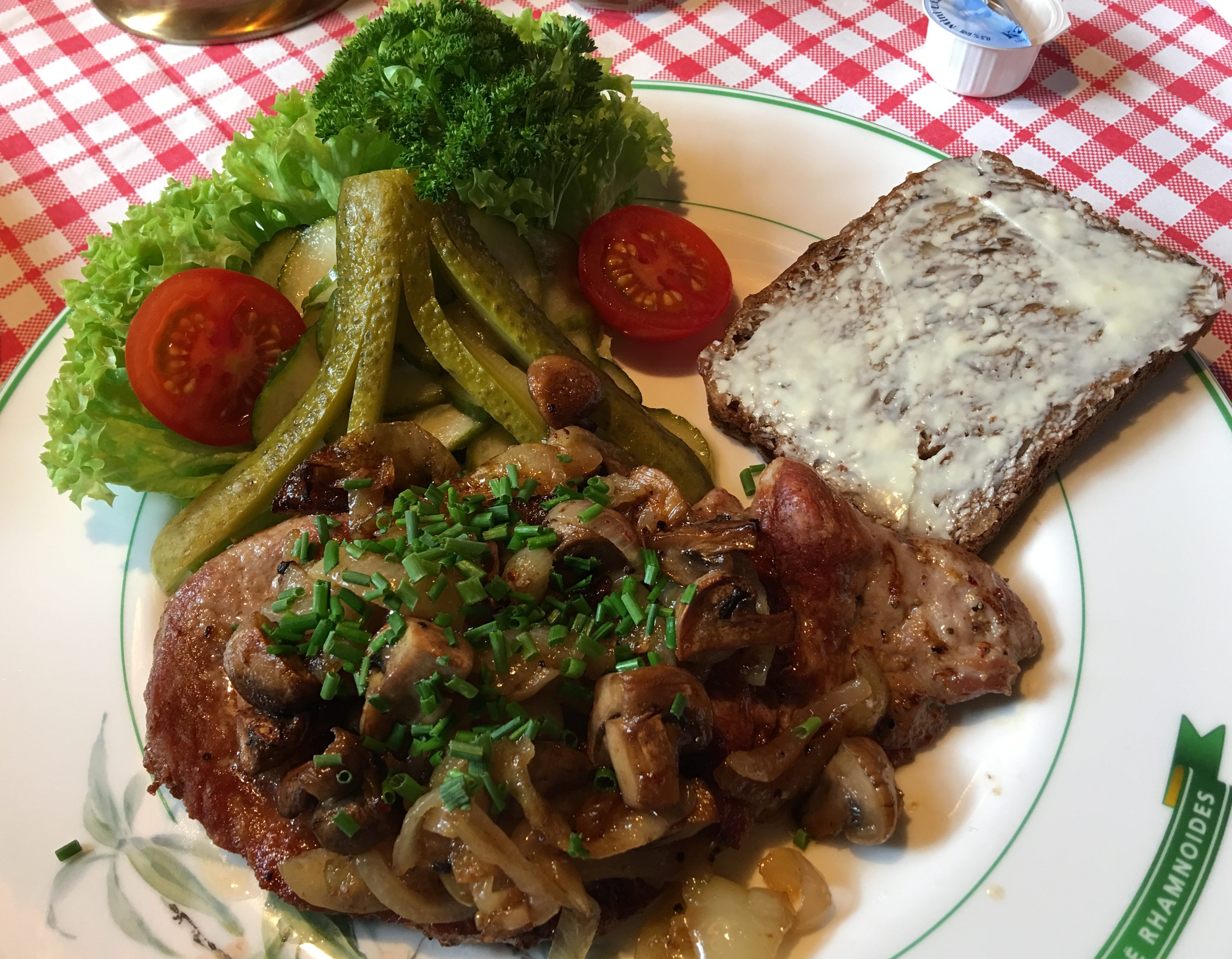 We had the Pork Cutlet with Mushroom and Onions and Gherkins. Great flavor.