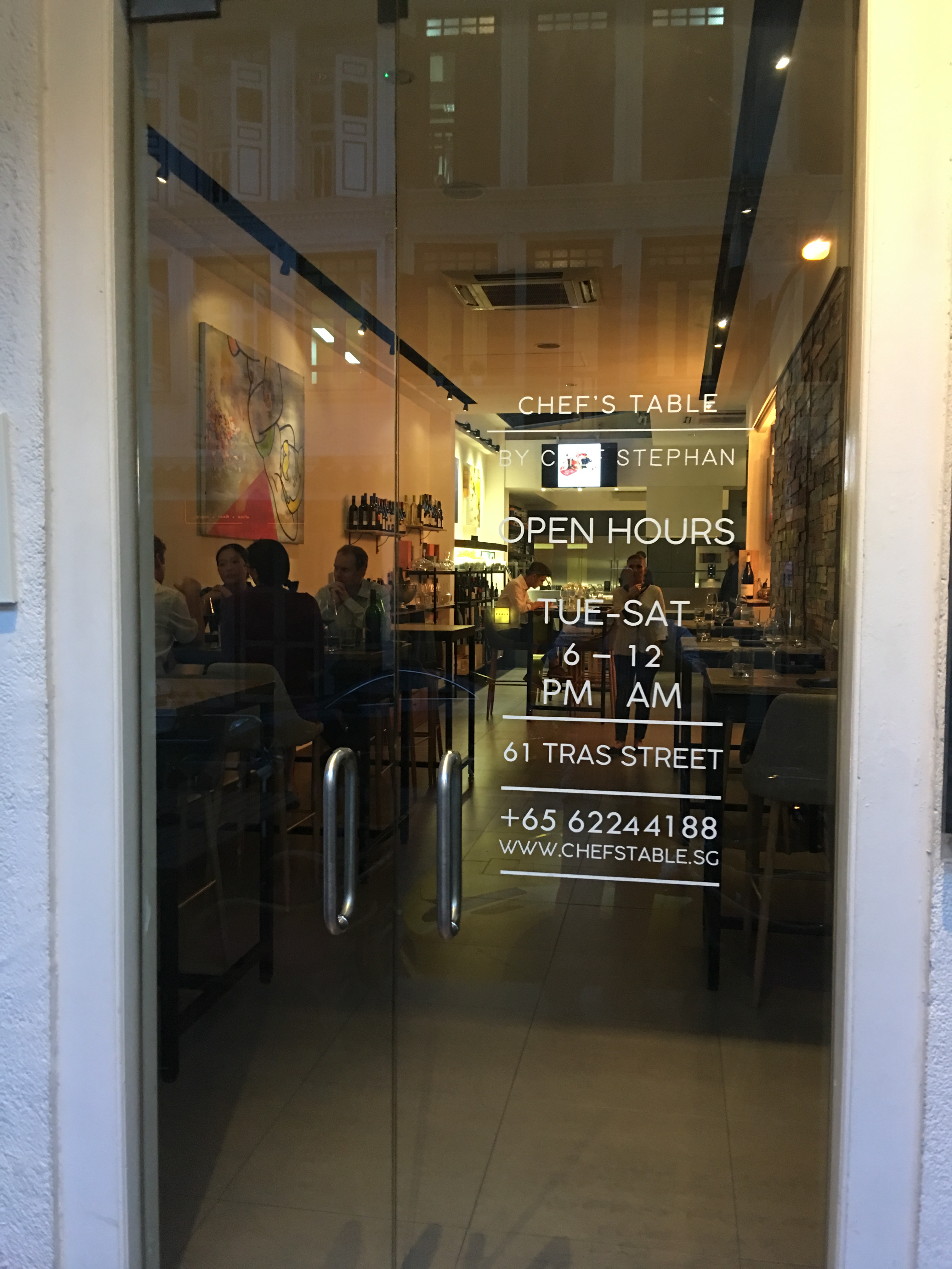 It’s my birthday! Lena wanted to treat me to something special, so we decided upon Chef’s Table by Chef Stephan Zoisl. Located at the shophouses on Tras Street in Tanjong Pagar, it has a very unique concept.
