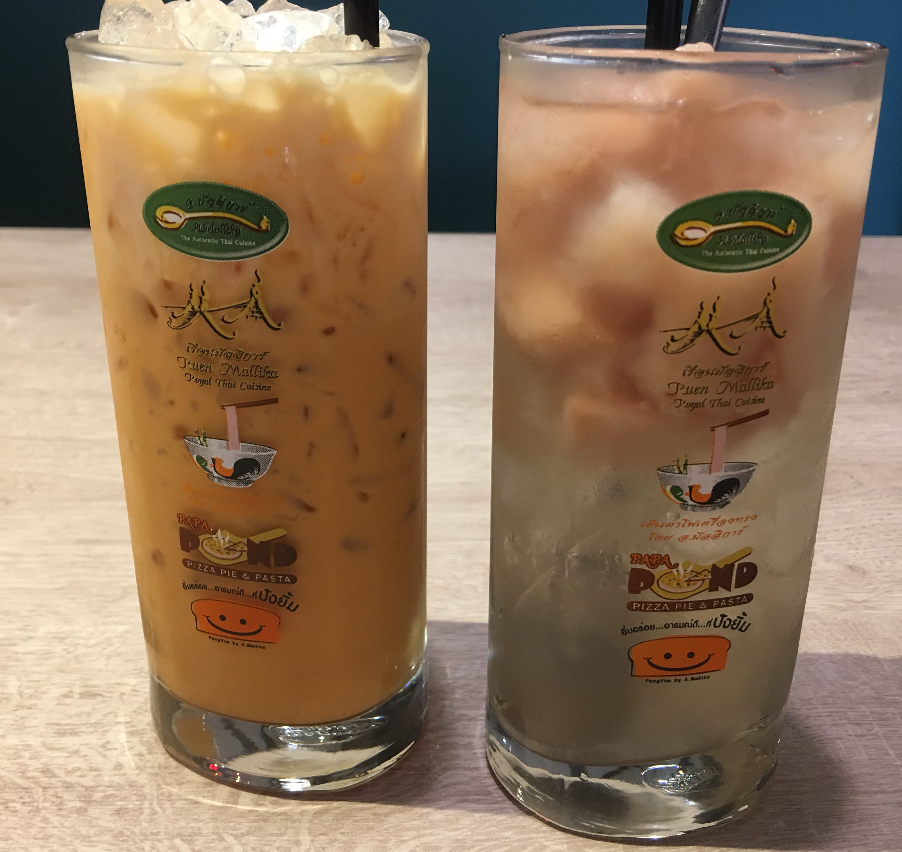 Here are the drinks with the requisite Thai Iced Tea on the left and then a Sour Plum-ish drink on the right.