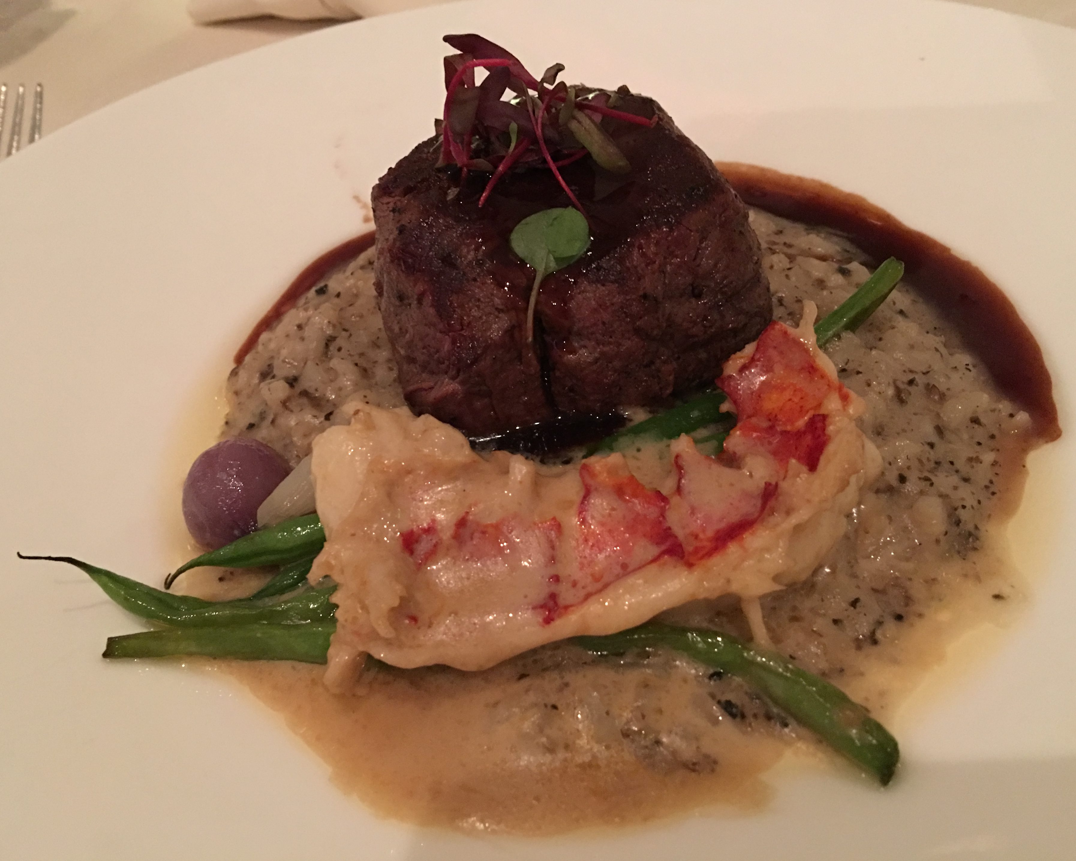Then it was on to the Main, where I went for the Surf and Turf. A Filet with a Lobster Tail, Truffle Risotto, Haricot Vert and Pearl Onions.