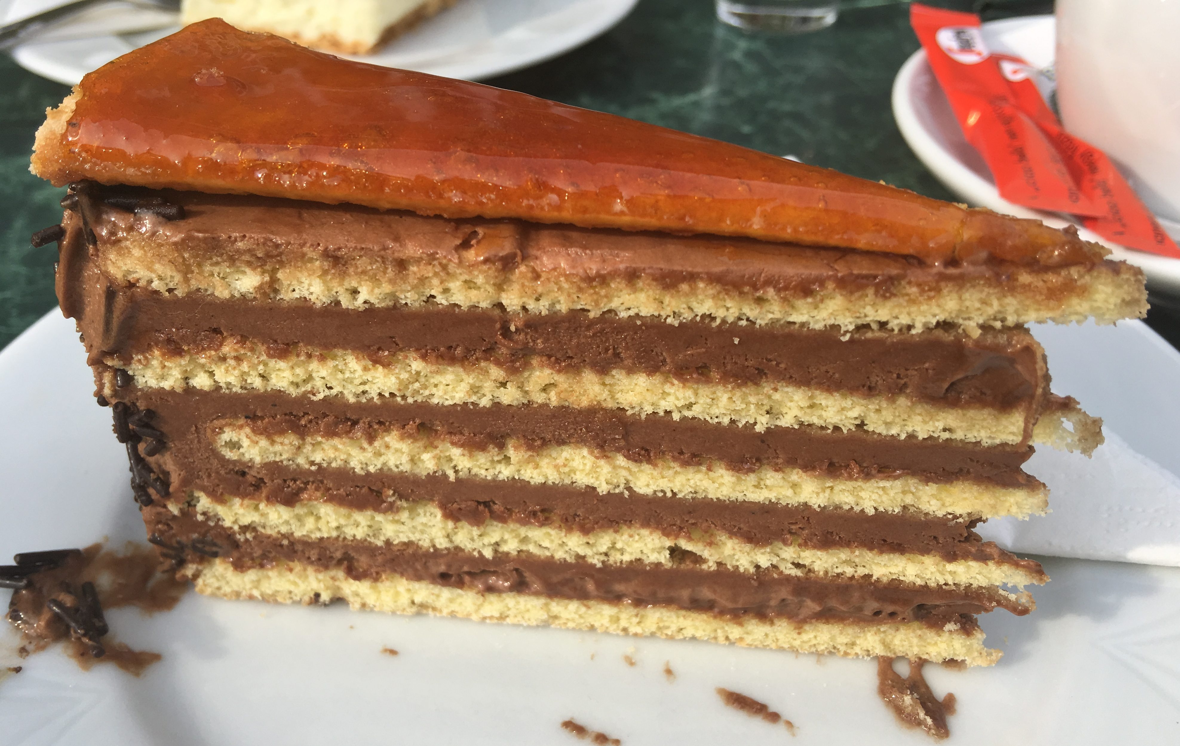 The famous Hungarian Dobos Torte. For me, a little dry, but still pretty good.