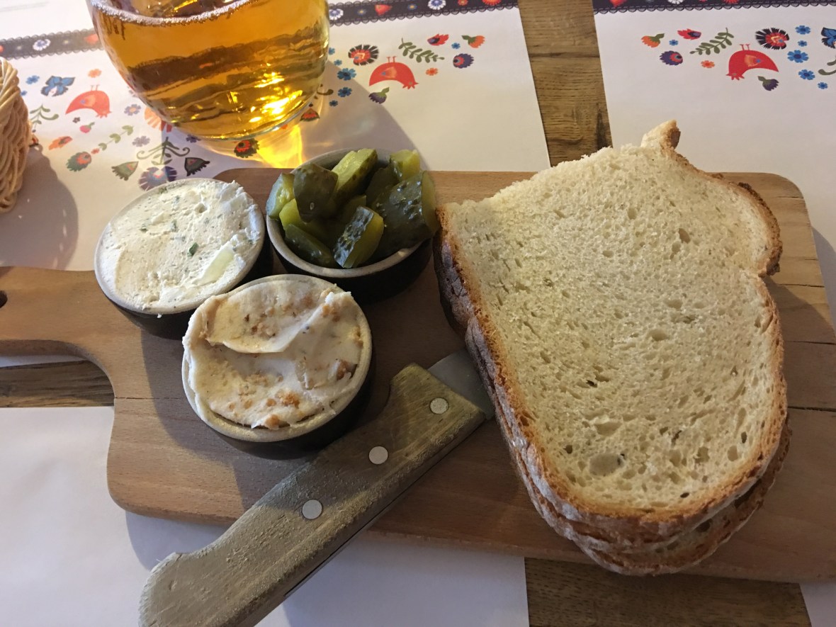 The traditional starter of pickles, bread and spread. The white one is a cream cheese, not bad. The other one looked liked a nut butter to me. Very rich! Turns out it’s lard with bacon bits! OMG! Heart Attack, but tastes so good!