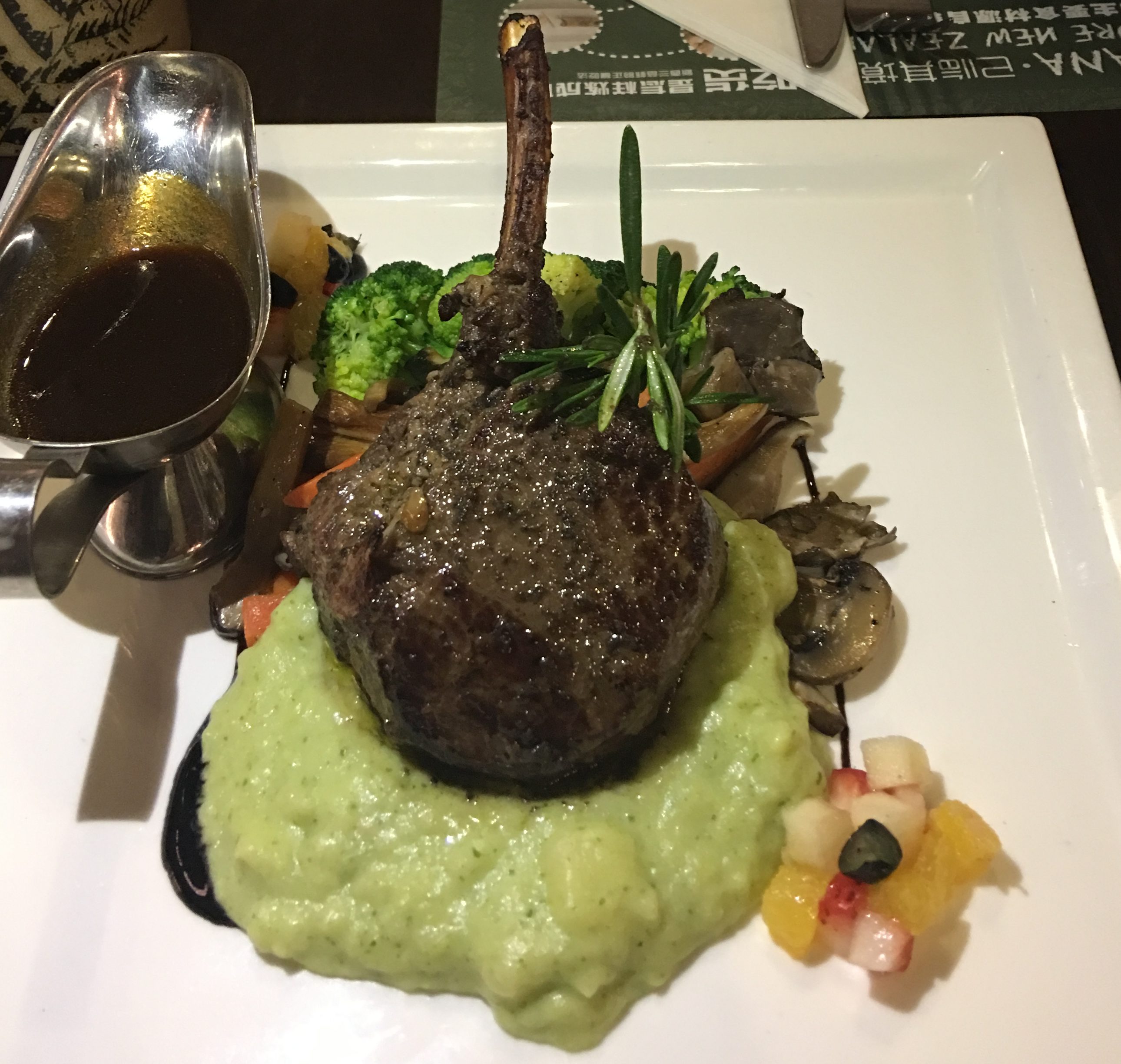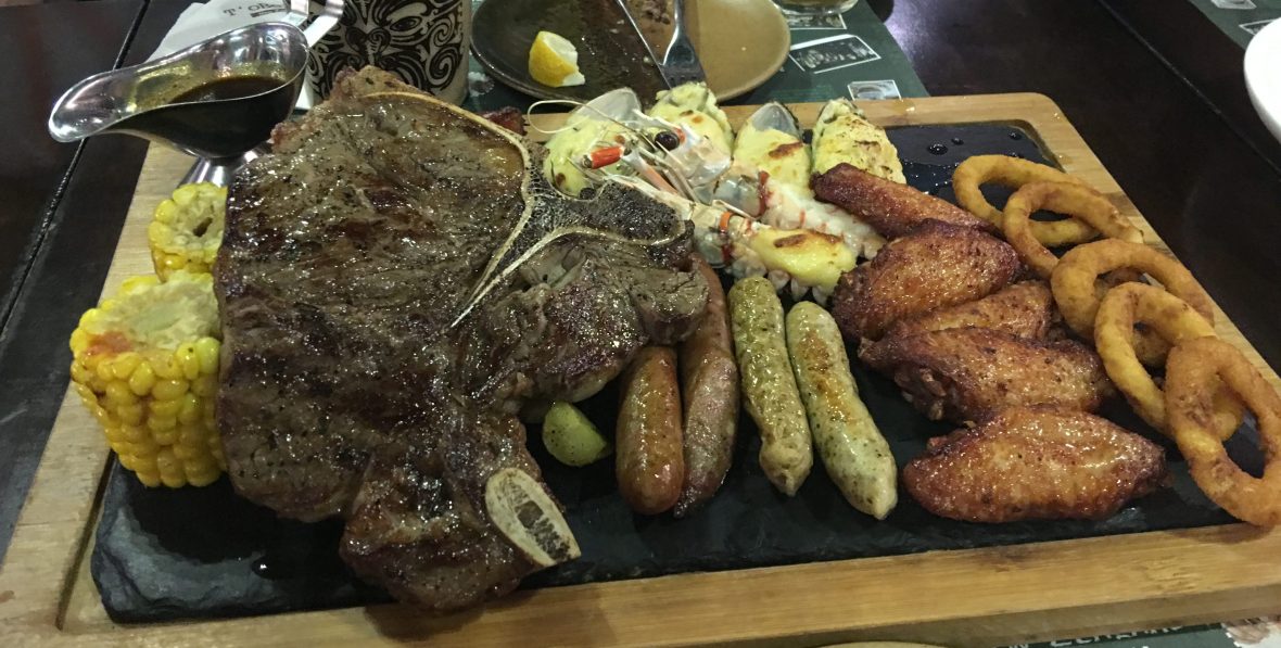 A Venison Chop. Pork Chop. Seafood Pizza A huge platter with Steak, Sausages, Chicken Wings, Prawns, Oysters.A nice Ribeye – all to myself! The food was good.  But the theme is too funny.