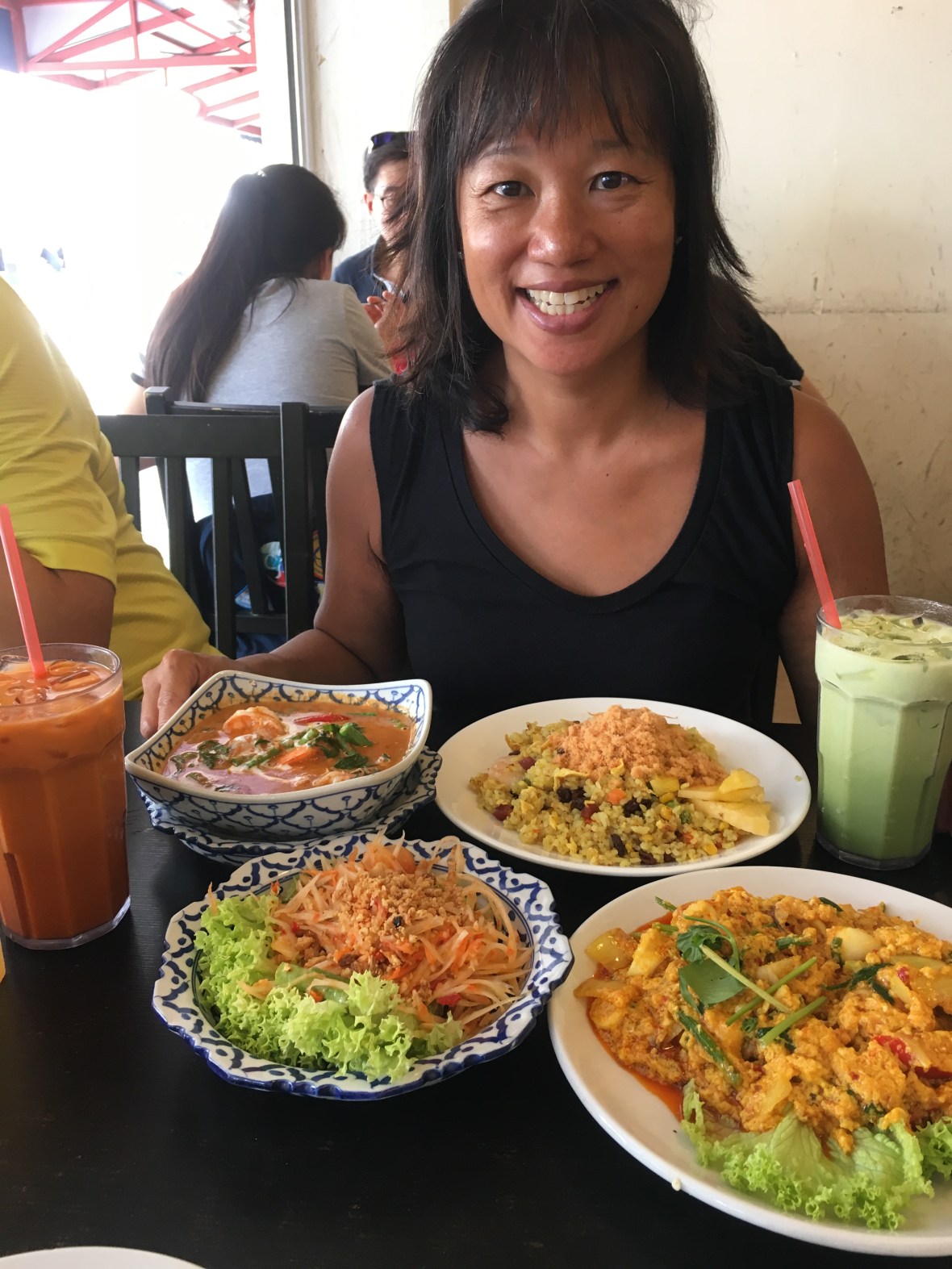 Pineapple Fried Rice Som Tom Yellow Curry Squid Red Curry Prawn Pandan ChickenMy sister says, “Yum!”