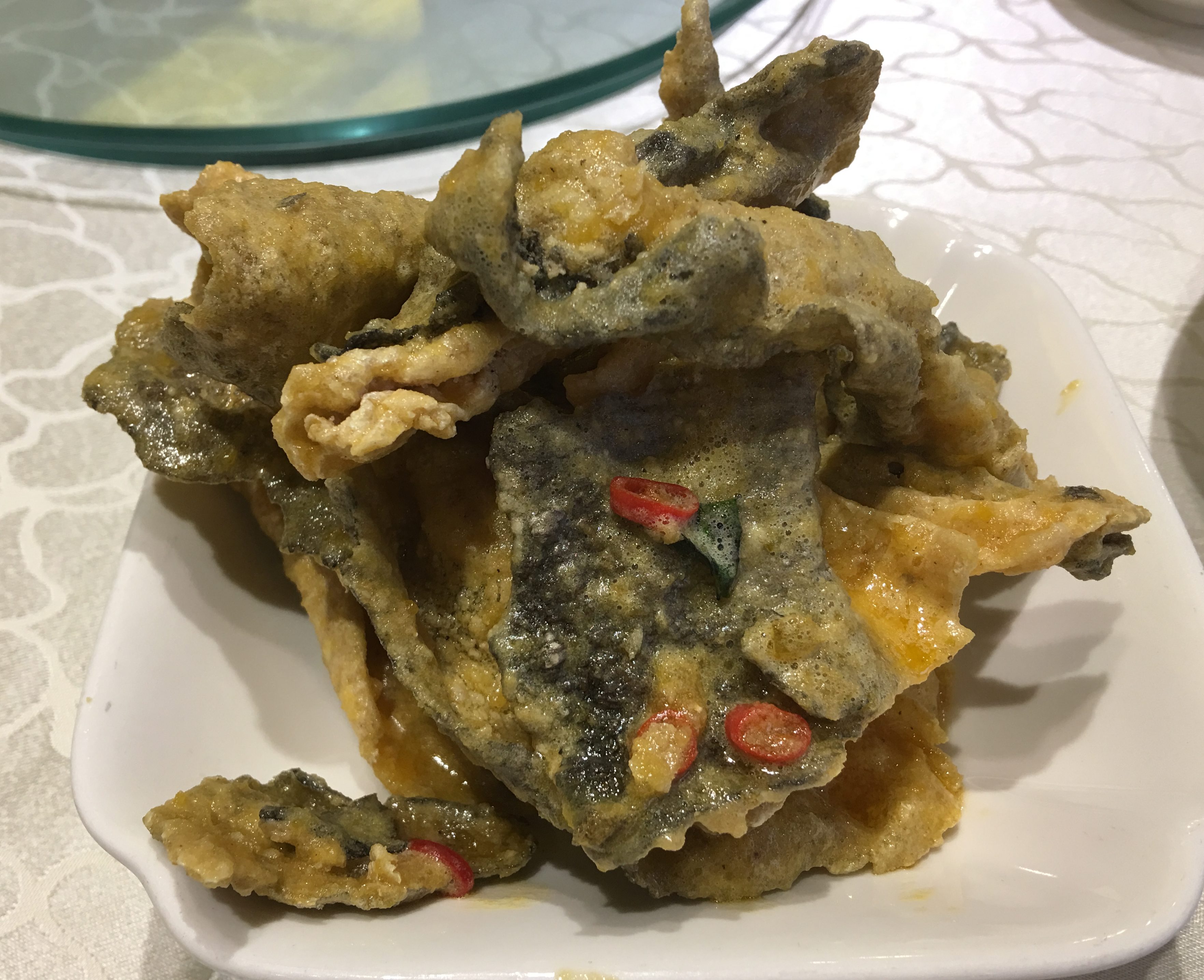 We started out with Salted Egg Salmon Skin. This was just awesome!