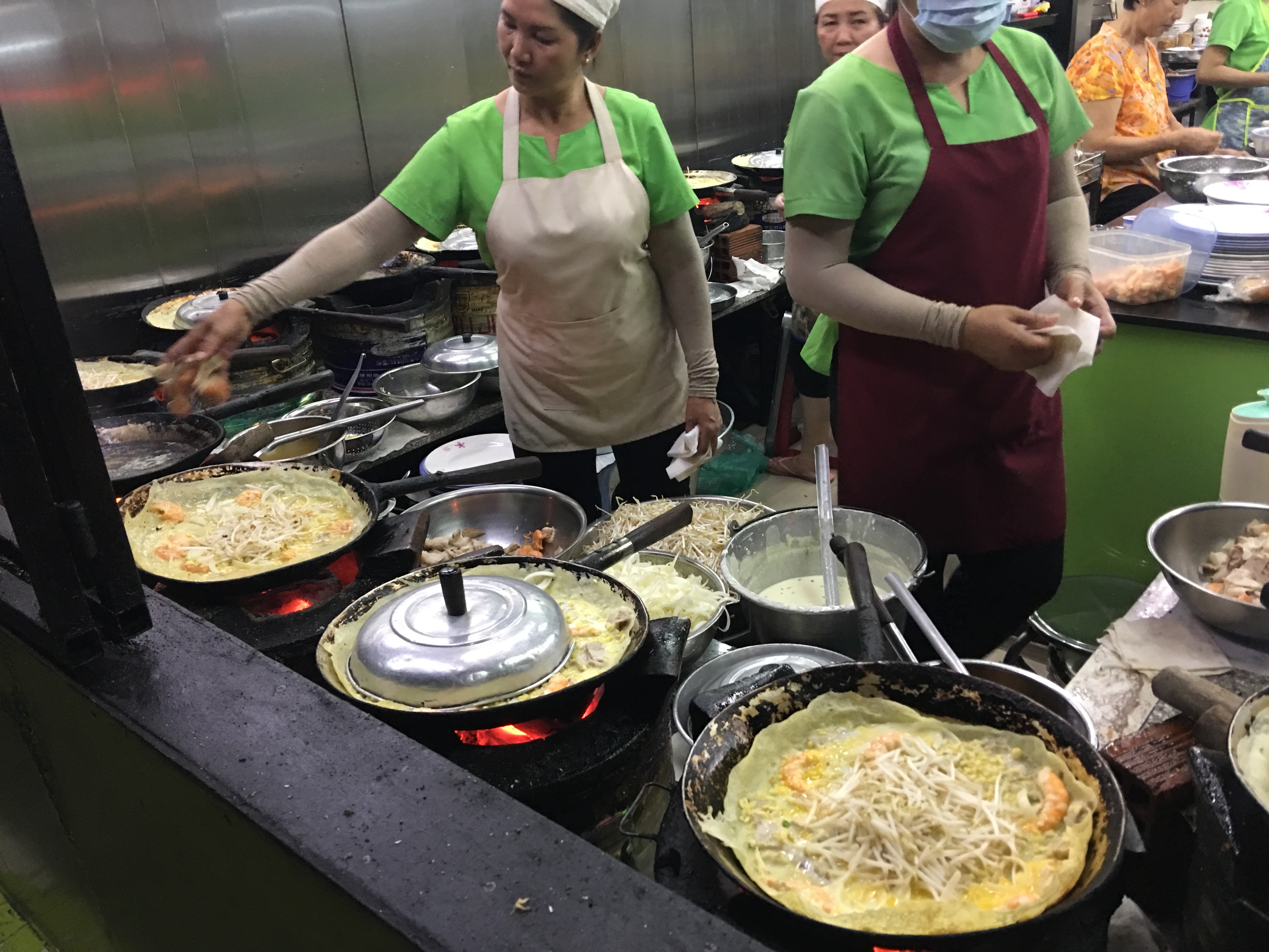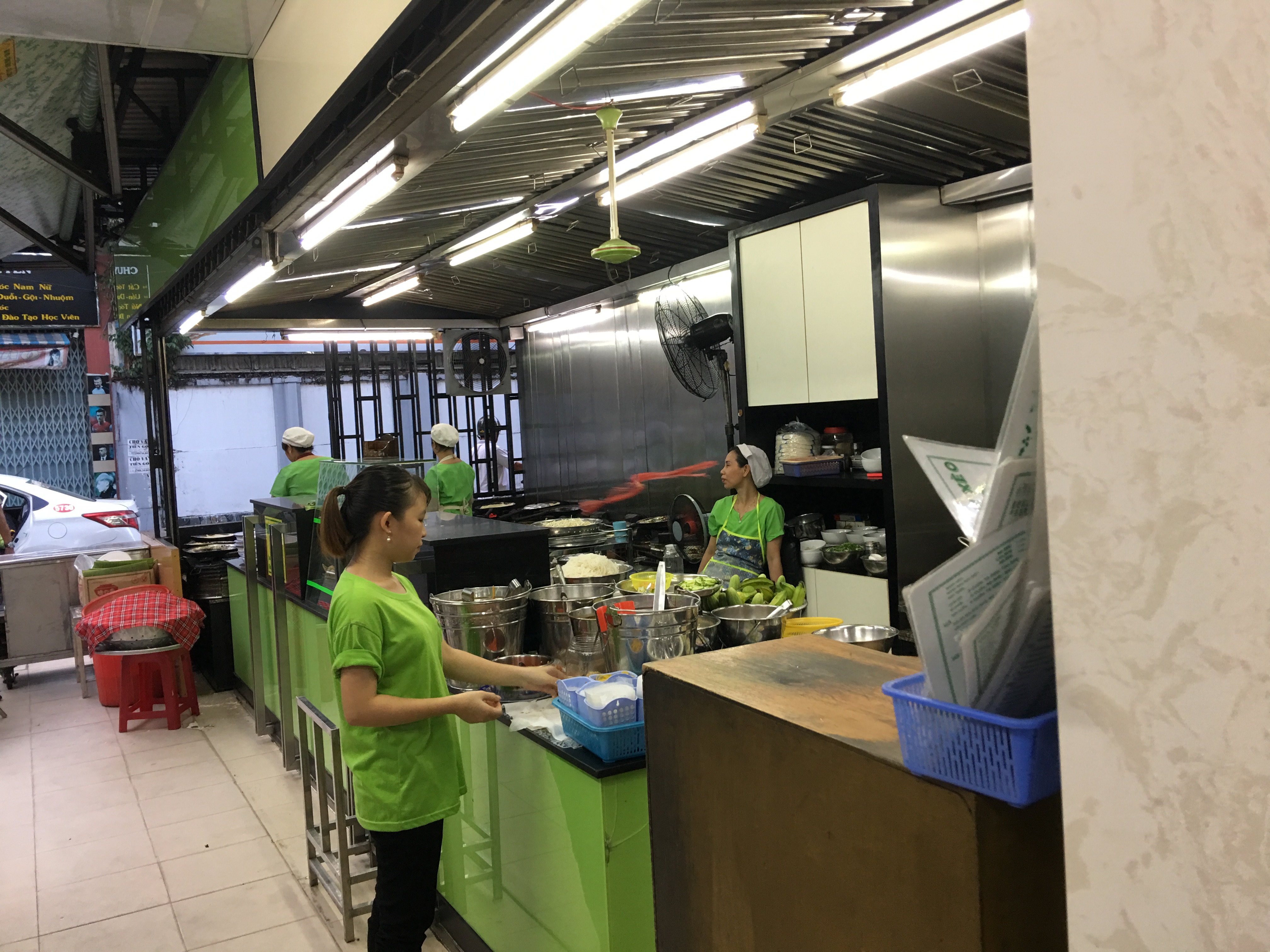 I took a seat at the first table to get a view of it all happening. The kitchen is right outside for the Bánh Xèo.