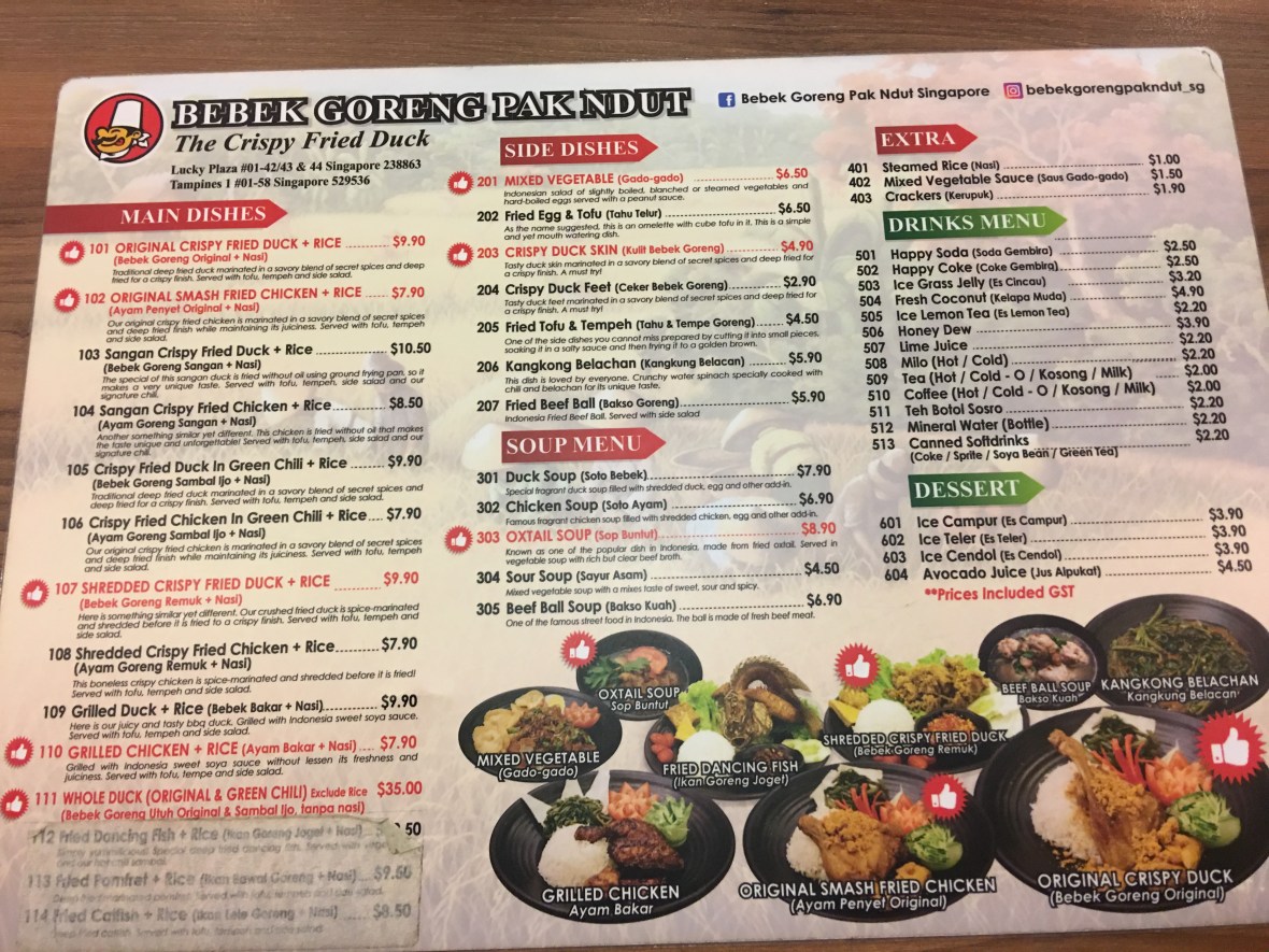 Located on the first floor at Lucky Plaza, you have to get the Fried Duck. They have the original version and then they also have Bebek Goreng Sangan, which is the Duck pan fried rather than deep fried. But there are a lot of other items on the menu.