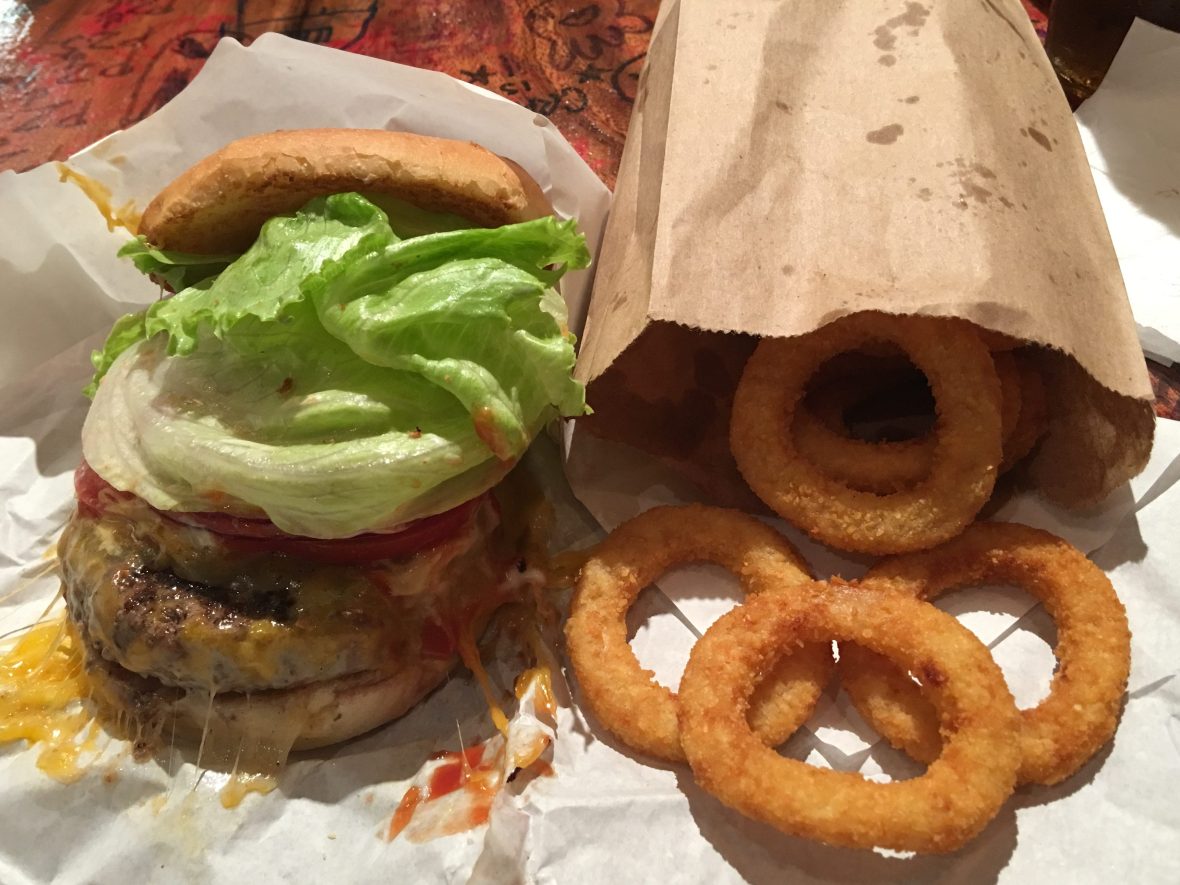 Here is what I think. The burger is good, not bad at all. The Onion Rings are terrible. They are the frozen minced kind, an after thought, frozen from a food service if I am right. Not worth it.