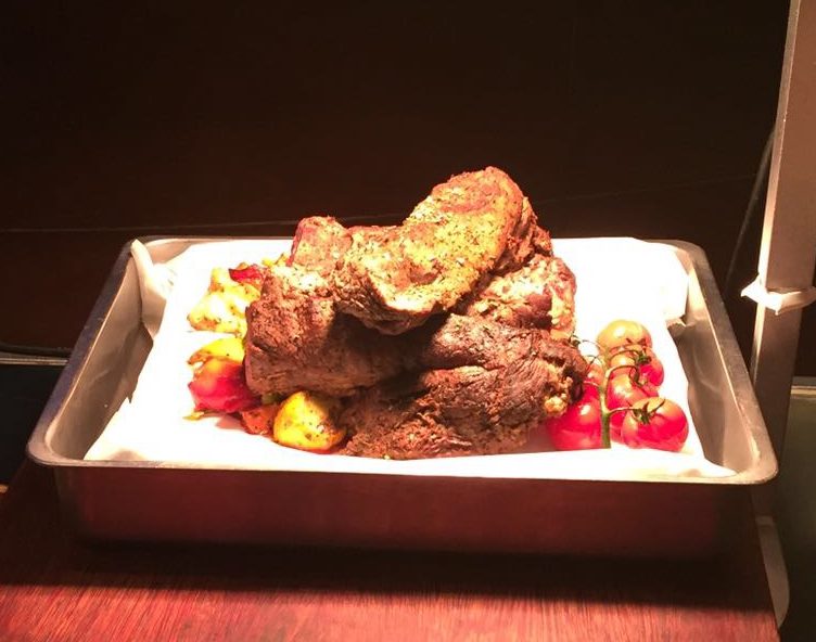 Shall we start the buffet? Carving up the ham! My only complaint on this is that there wasn’t the fresh tomato and bread usually served with this. I just made my own since the salad bar had tomatoes and there were baguettes!