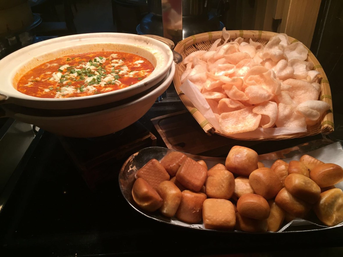 Chili Crab Sauce with Crab, Mantou and Keropok. We used the sauce to dip the cold Lobster