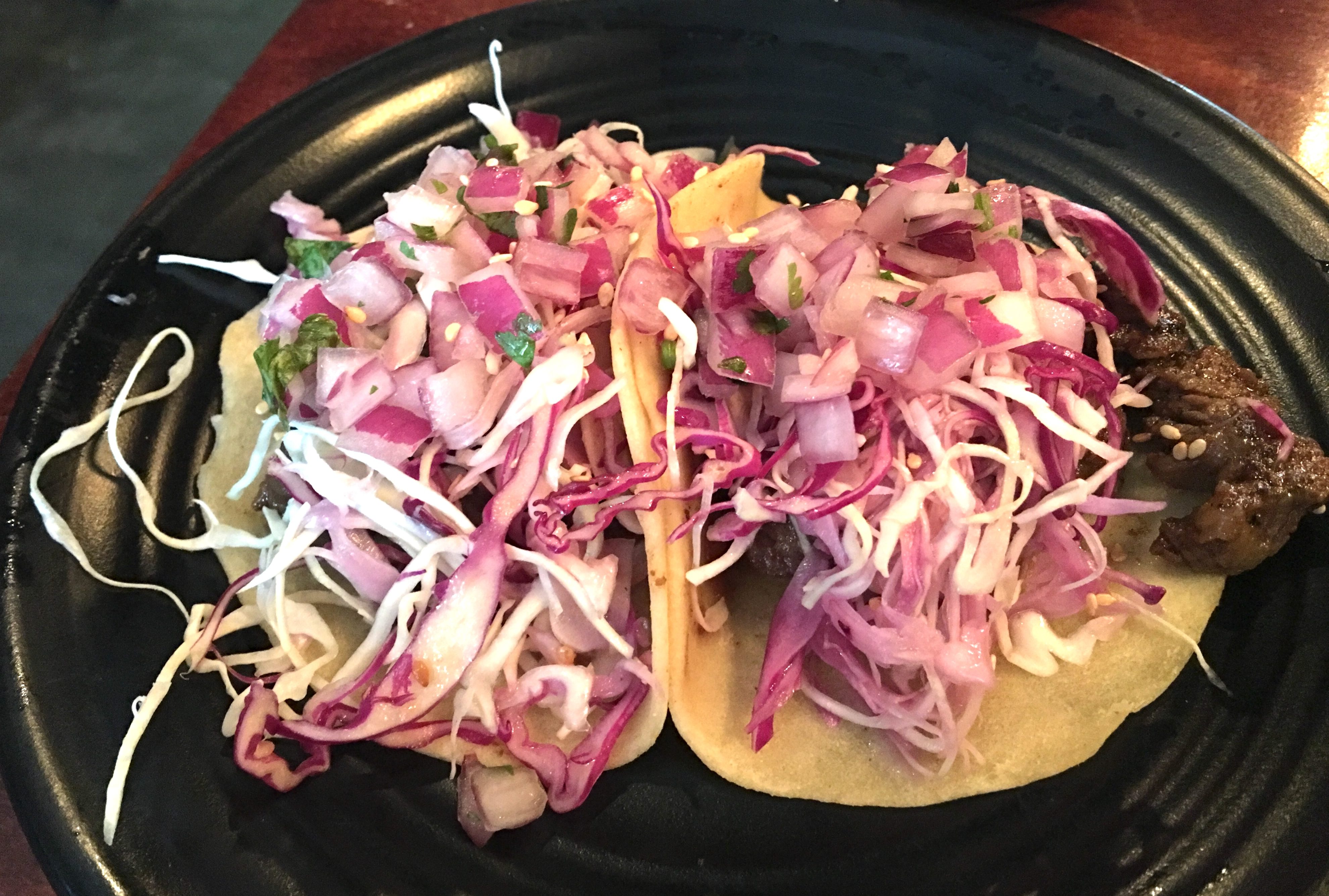 I added the Galbi Short Rib tacos as well. The meat was seasoned nicely, and it was just the right amount of meat in proportion to the tortilla. This is a winner. A little more sauce needed here also, but still ok.