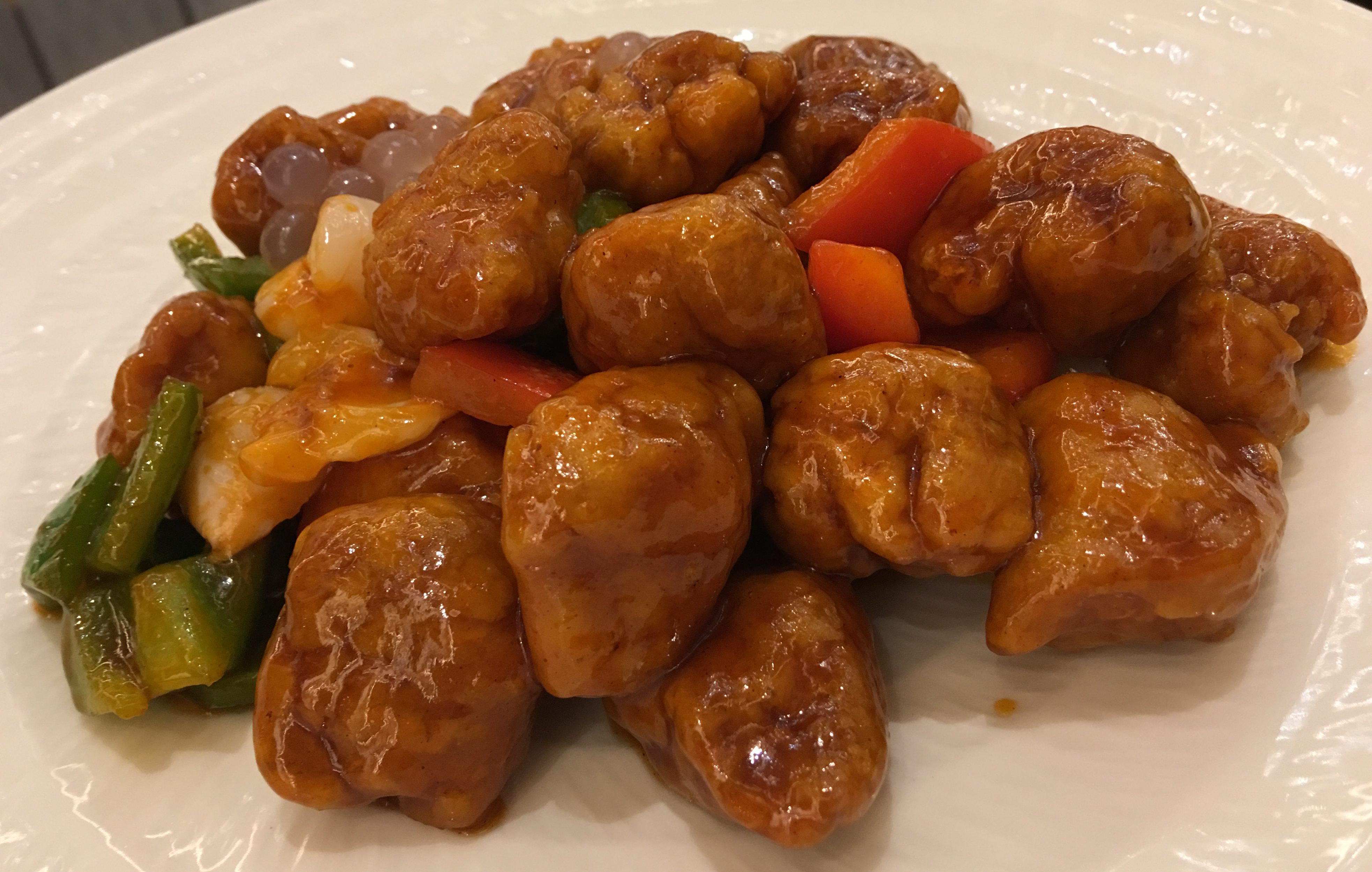 Sweet and Sour Pork. This was a standout to me. Outstanding! Crispy, not a lot of batter and the pork was fresh and tender inside. The other great item here are the little balls of Lychee juice that squirt when bit into. A nice little surprise.