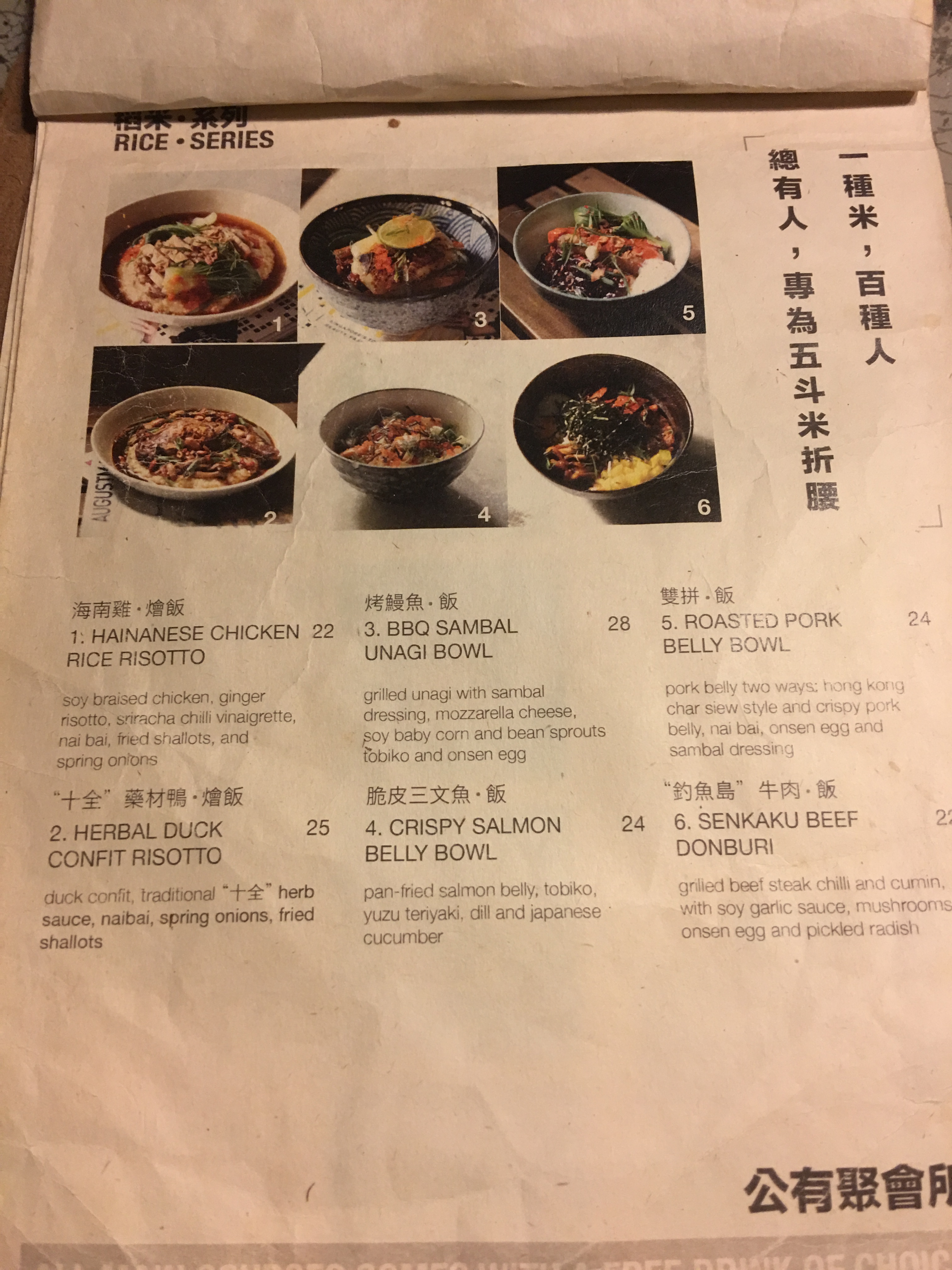 The menu is quite a mixture of items.