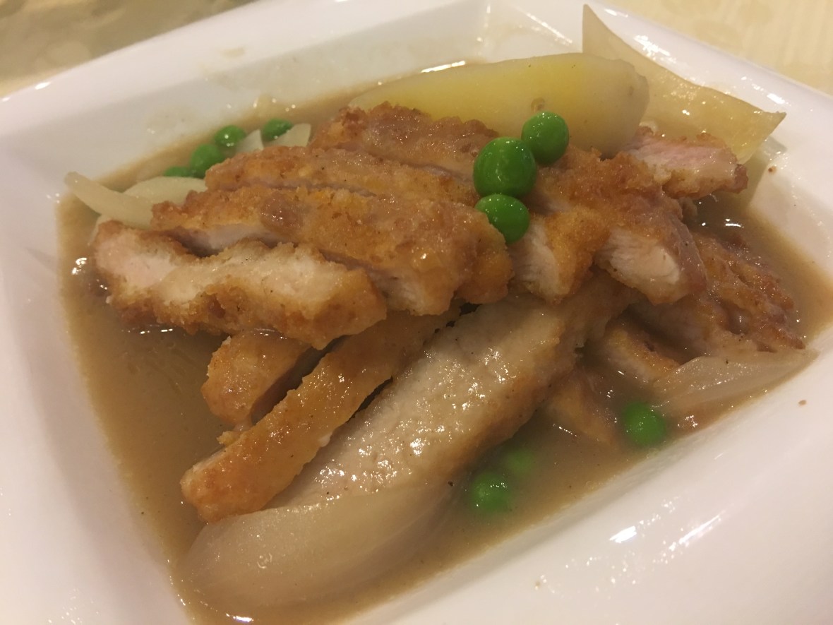 The other item that people think about as Hainanese food is the Pork Chop. Here it is. For me, it was tender and delicious. I usually see this with an orange colored sauce, but this was a blander color. But the taste is there.