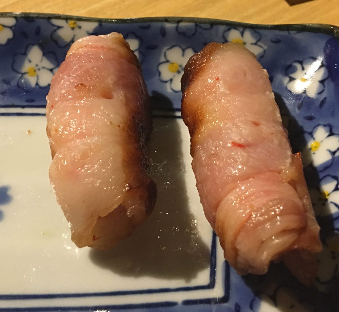 Bacon wrapped Crab Sticks.